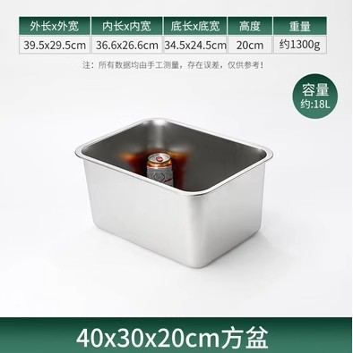 304 스테인레스 사각 대야 직사각형 사각 접시 뷔페 부분 대야 깊은 트레이 패스트 푸드 대야 뚜껑 사각 상자