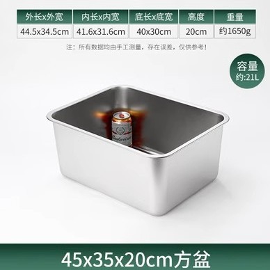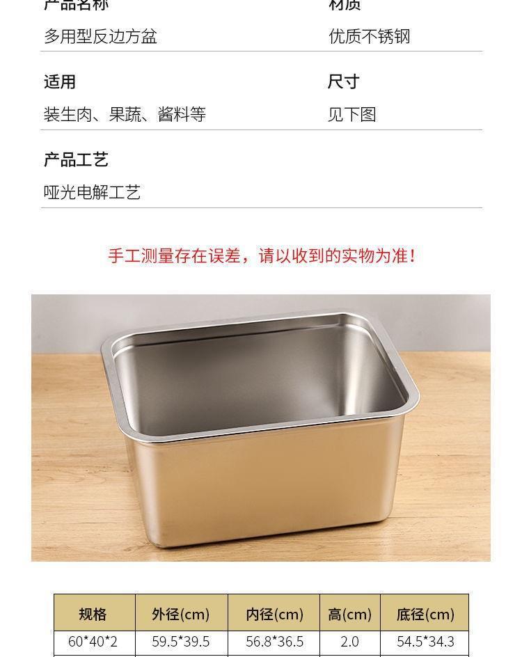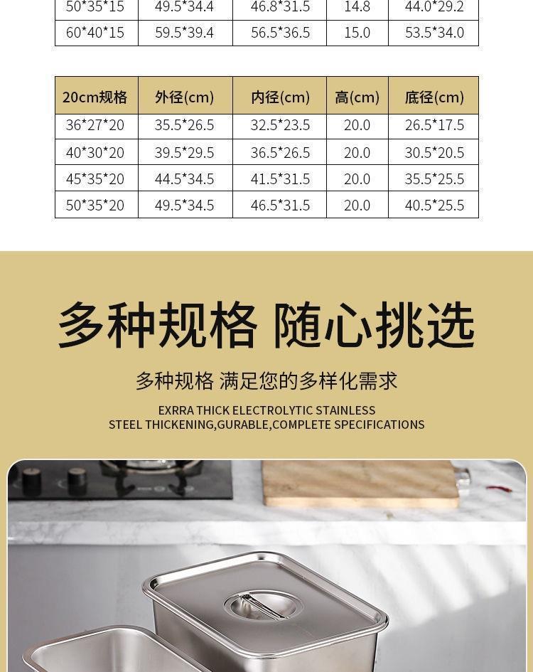 304 스테인레스 사각 대야 직사각형 사각 접시 뷔페 부분 대야 깊은 트레이 패스트 푸드 대야 뚜껑 사각 상자스토어 가기
