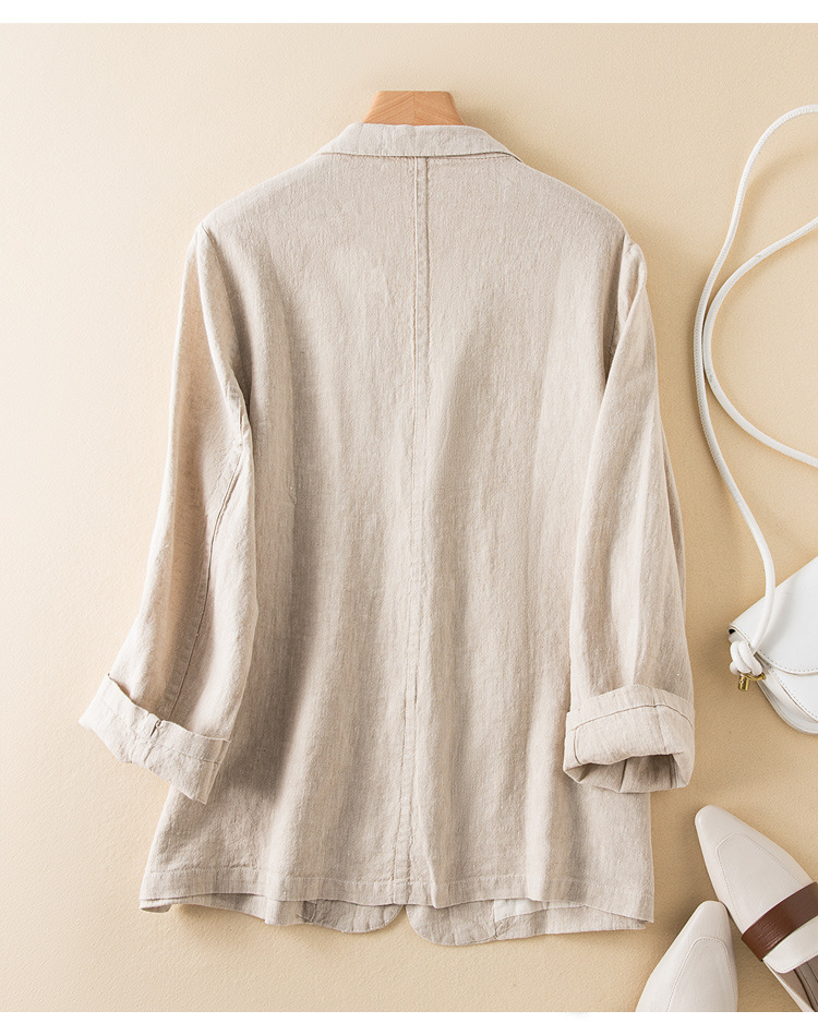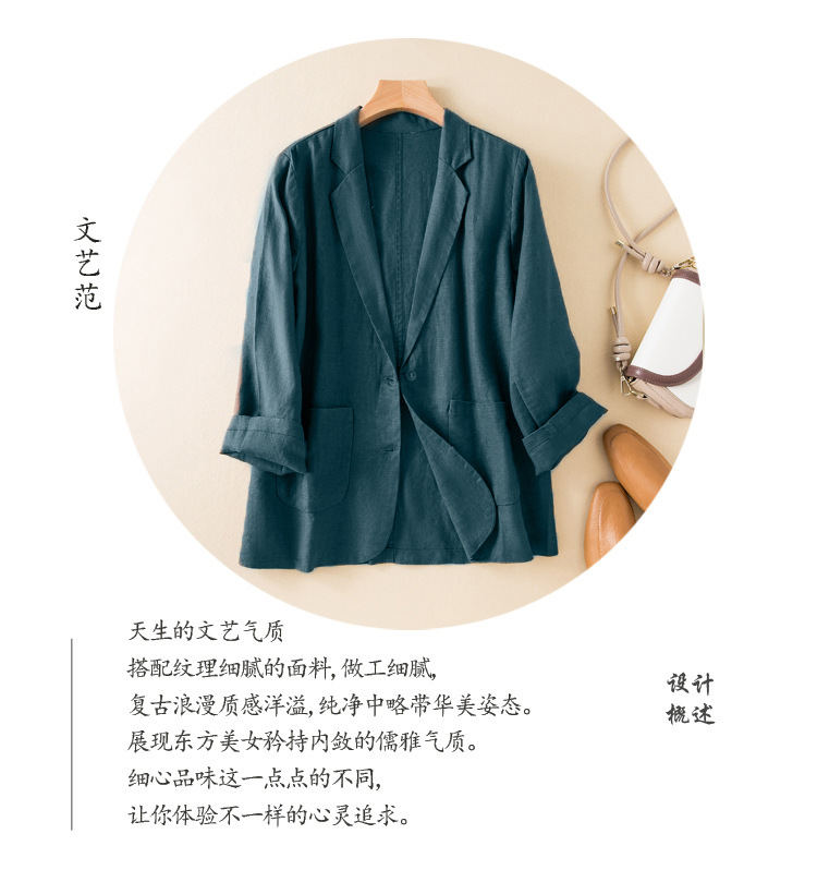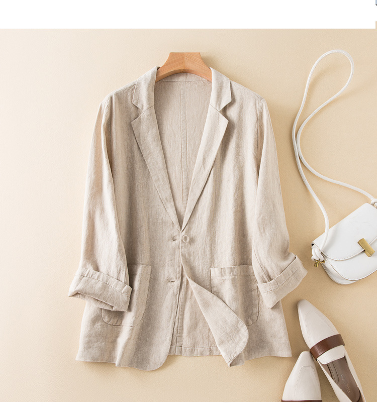 2026 봄 가을 캐주얼 린넨 여성용 블레이저, 긴팔 얇은 숏 스타일 면마 블레이저 여성용 (실제 사진)스토어 가기