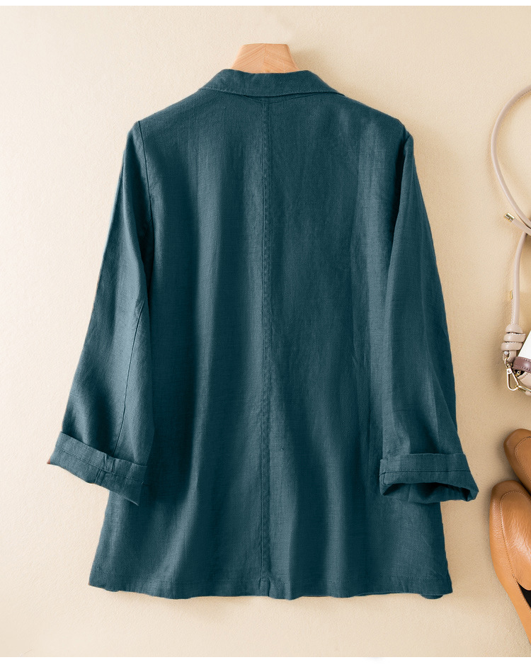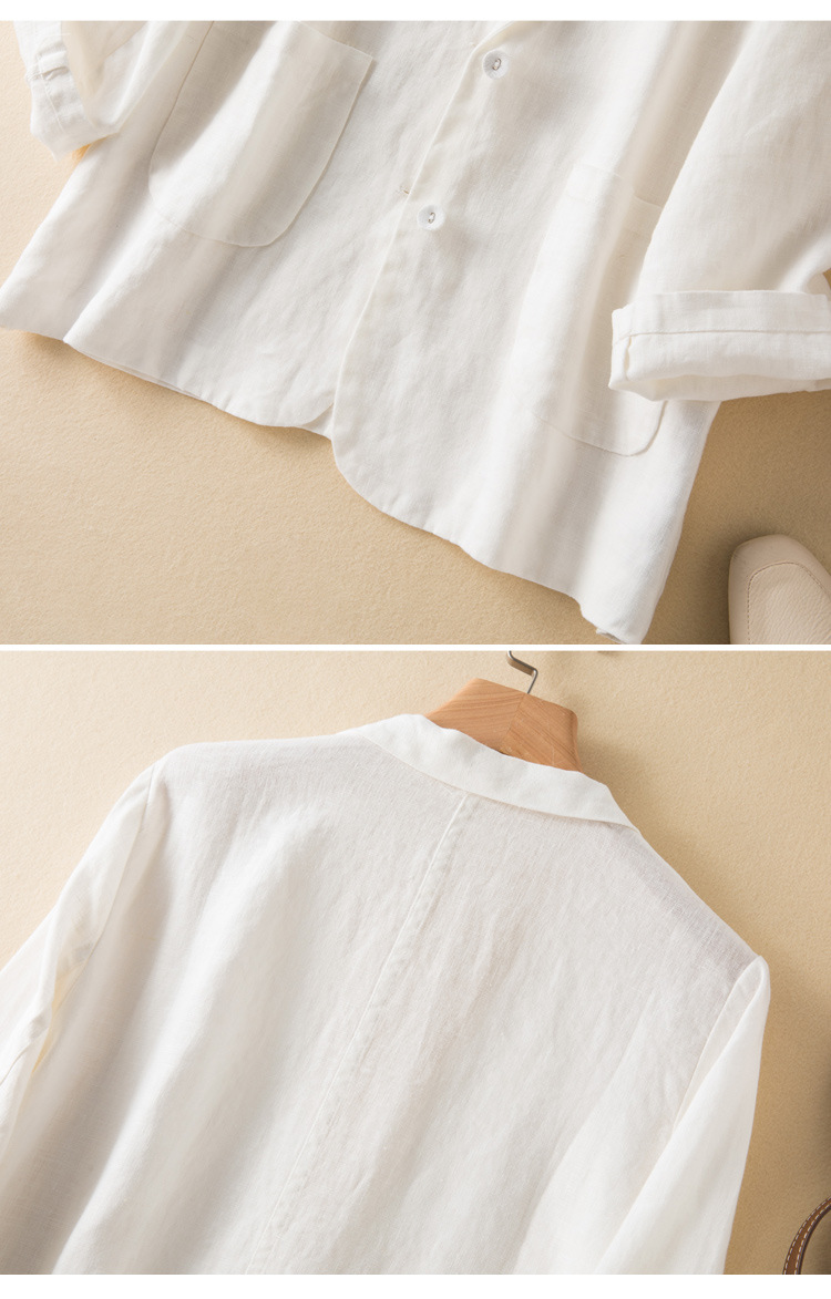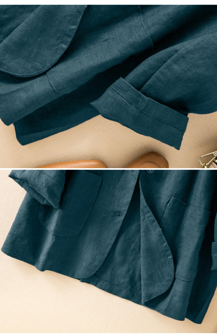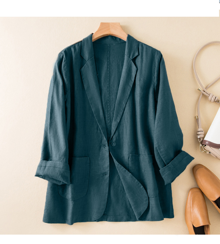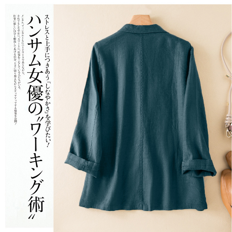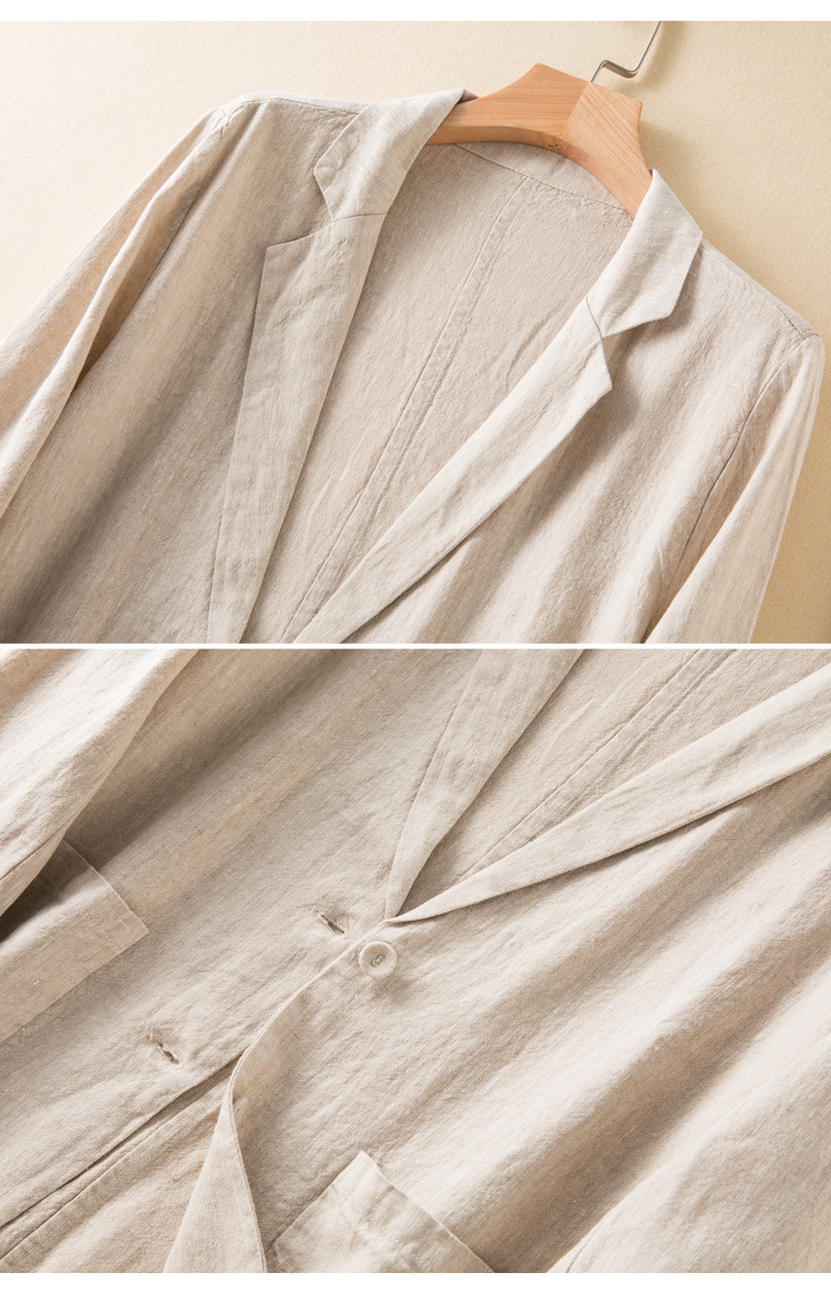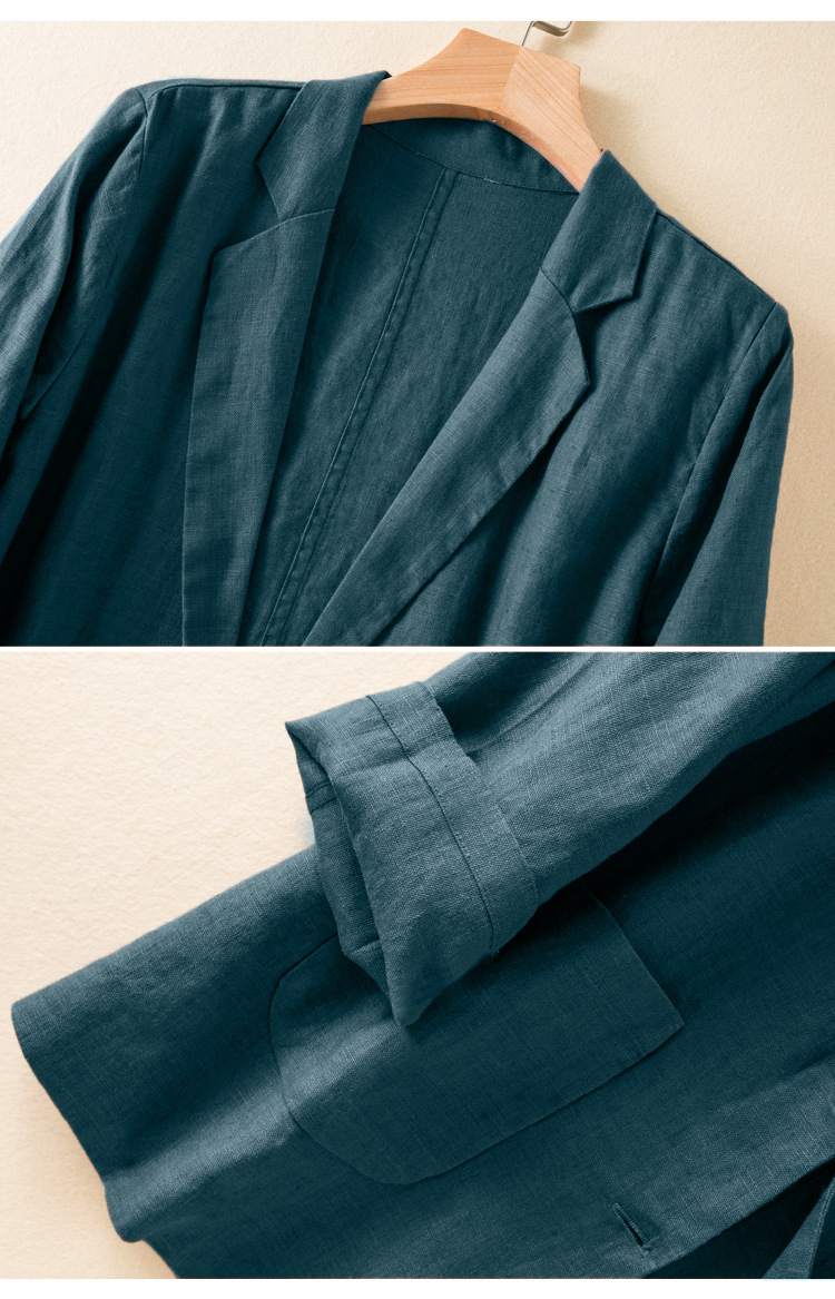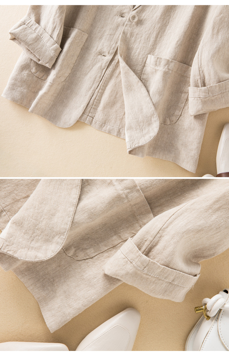 2026 봄 가을 캐주얼 린넨 여성용 블레이저, 긴팔 얇은 숏 스타일 면마 블레이저 여성용 (실제 사진)
