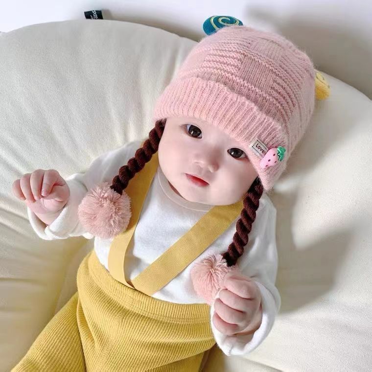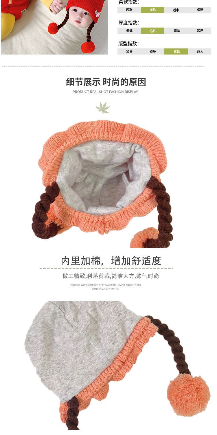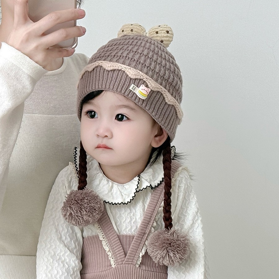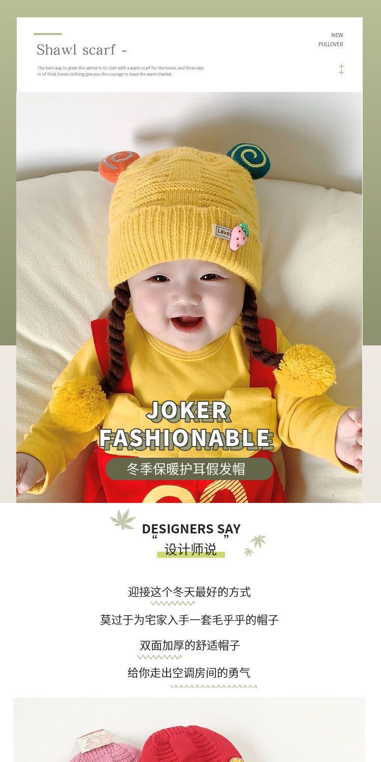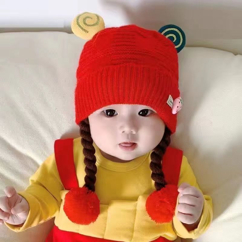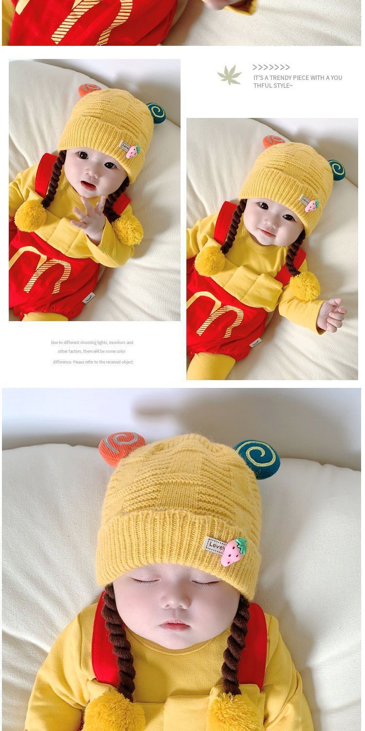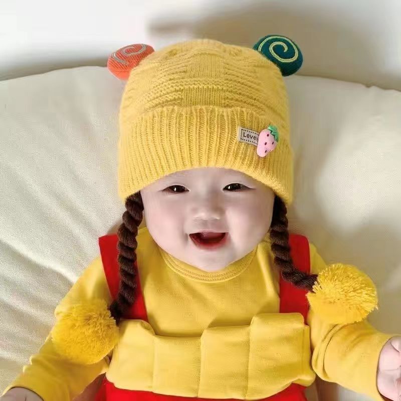아기의 모자 가을과 겨울 귀 보호 두꺼운 따뜻한 양모 니트 귀여운 가발 아기 풀오버 따뜻한 슈퍼 귀여운