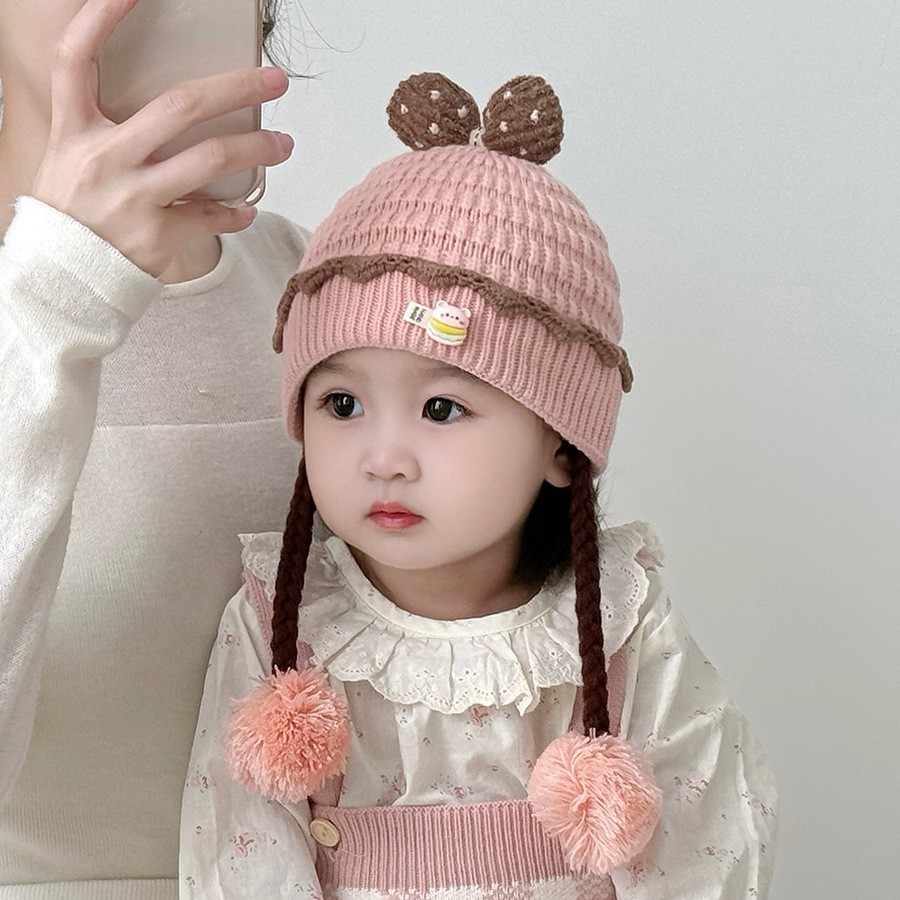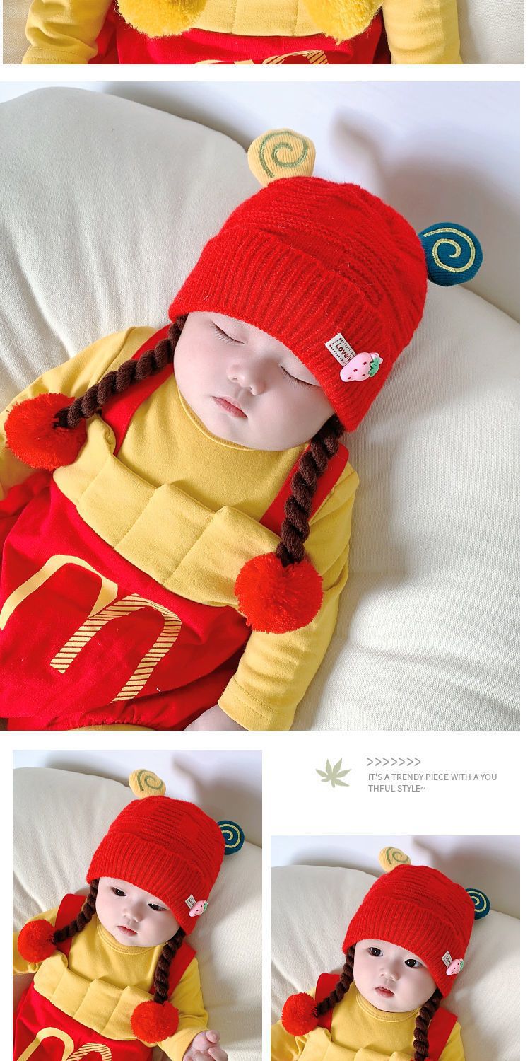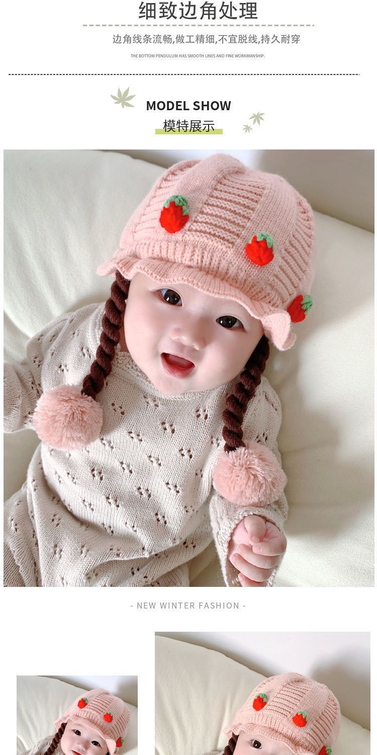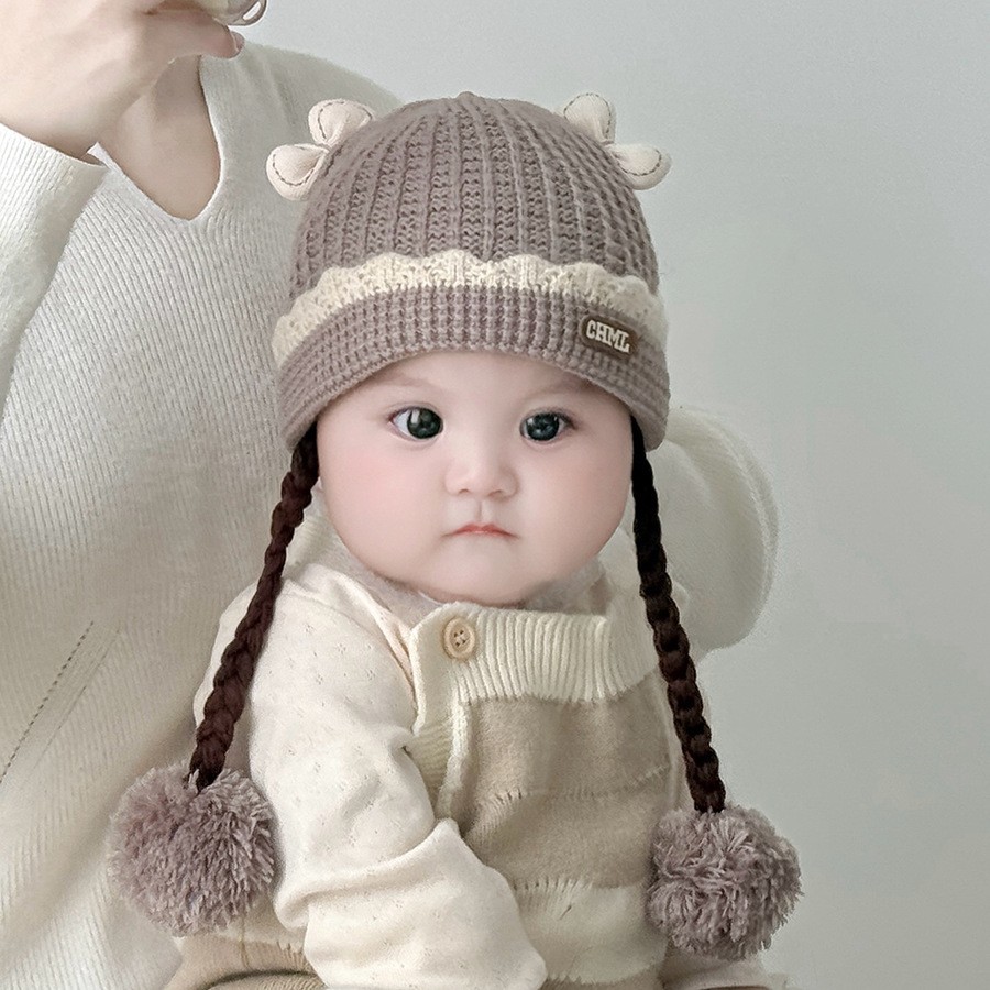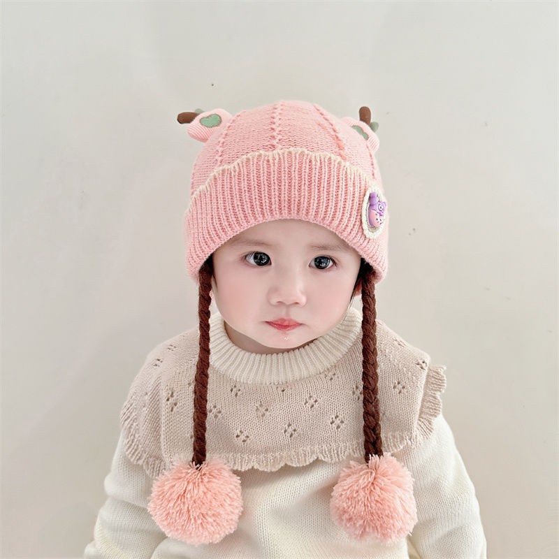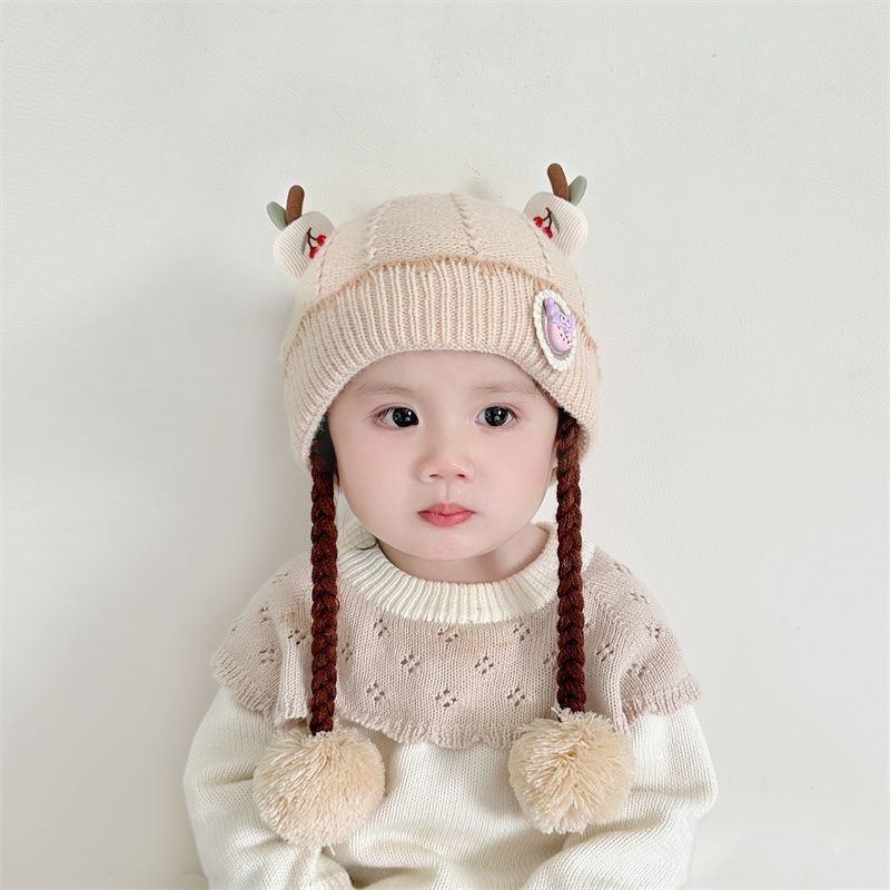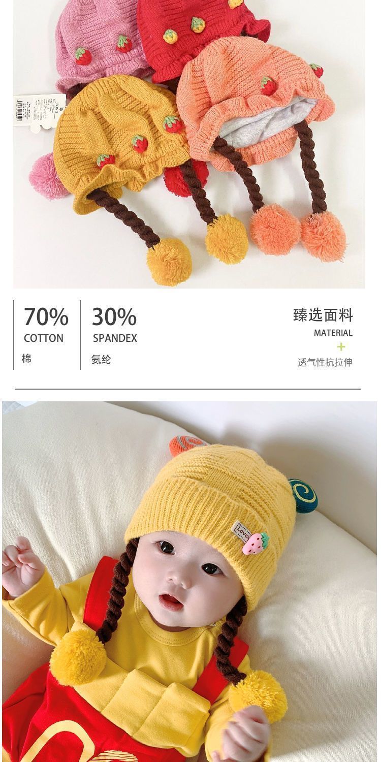 아기의 모자 가을과 겨울 귀 보호 두꺼운 따뜻한 양모 니트 귀여운 가발 아기 풀오버 따뜻한 슈퍼 귀여운