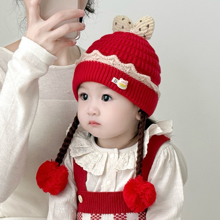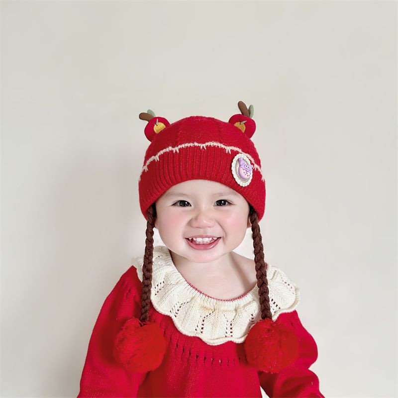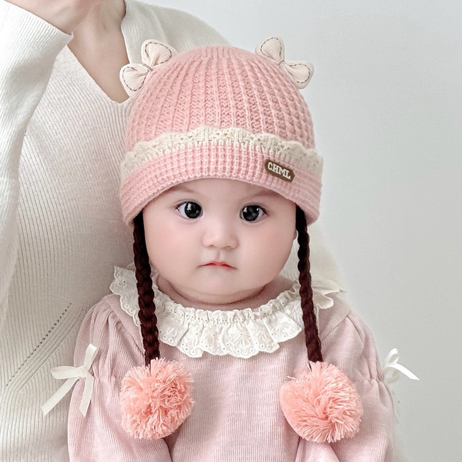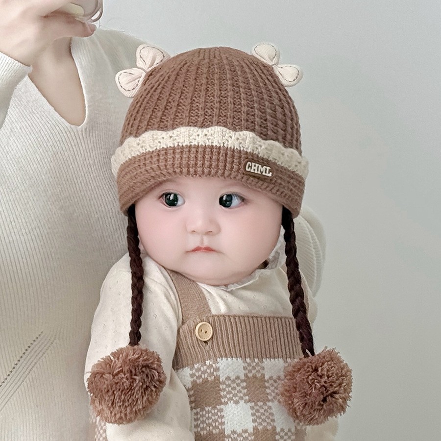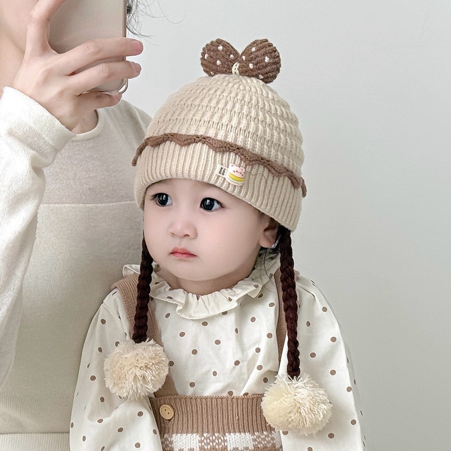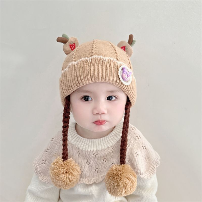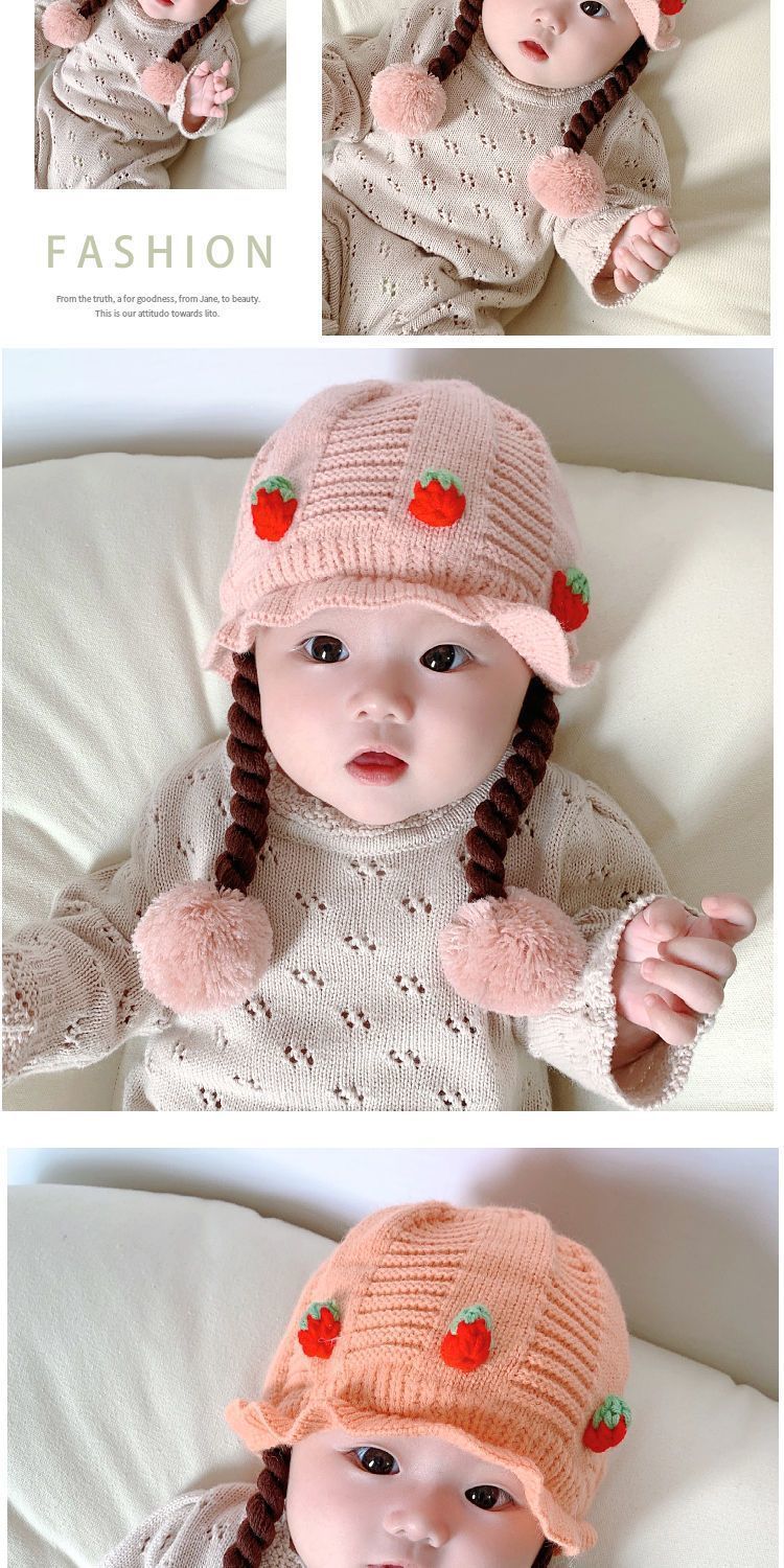 아기의 모자 가을과 겨울 귀 보호 두꺼운 따뜻한 양모 니트 귀여운 가발 아기 풀오버 따뜻한 슈퍼 귀여운