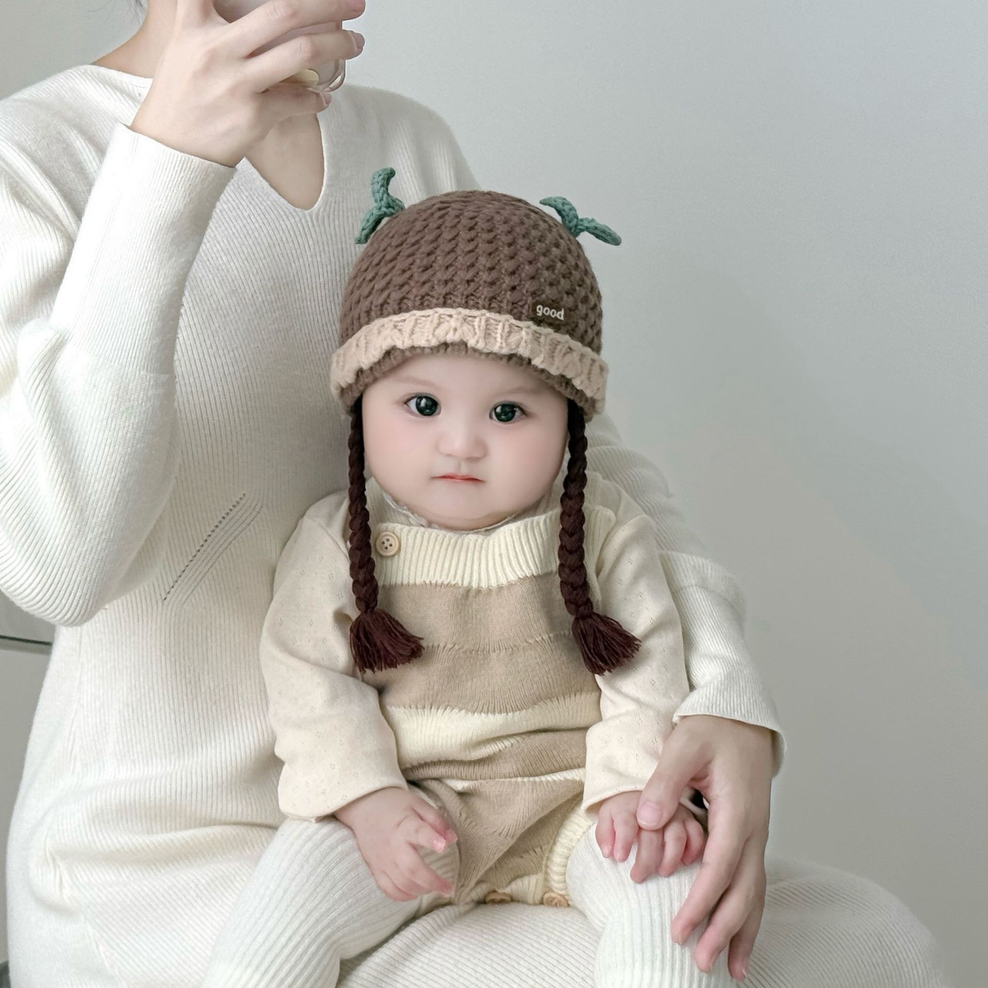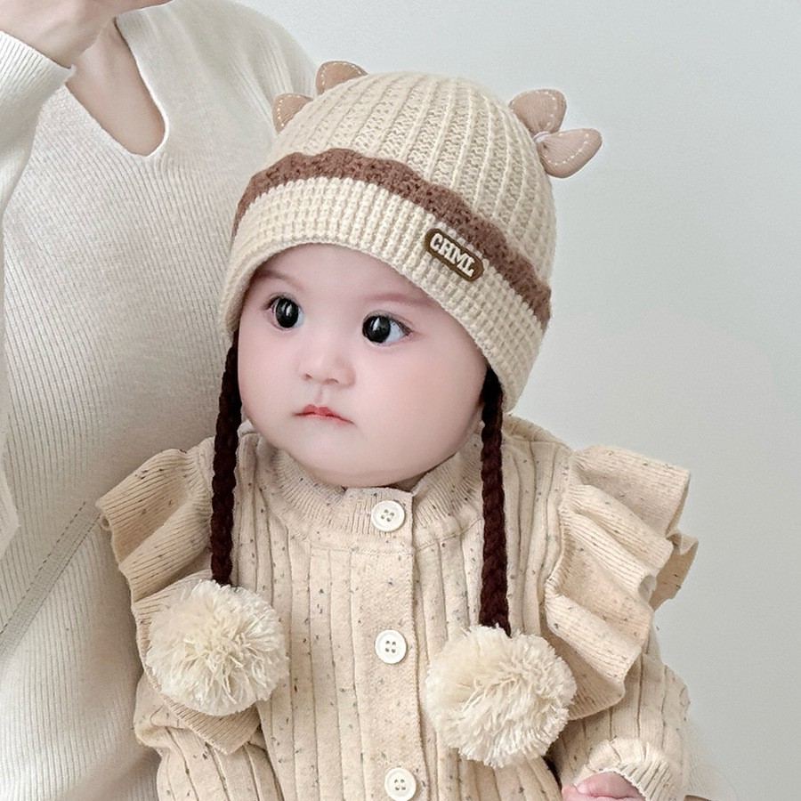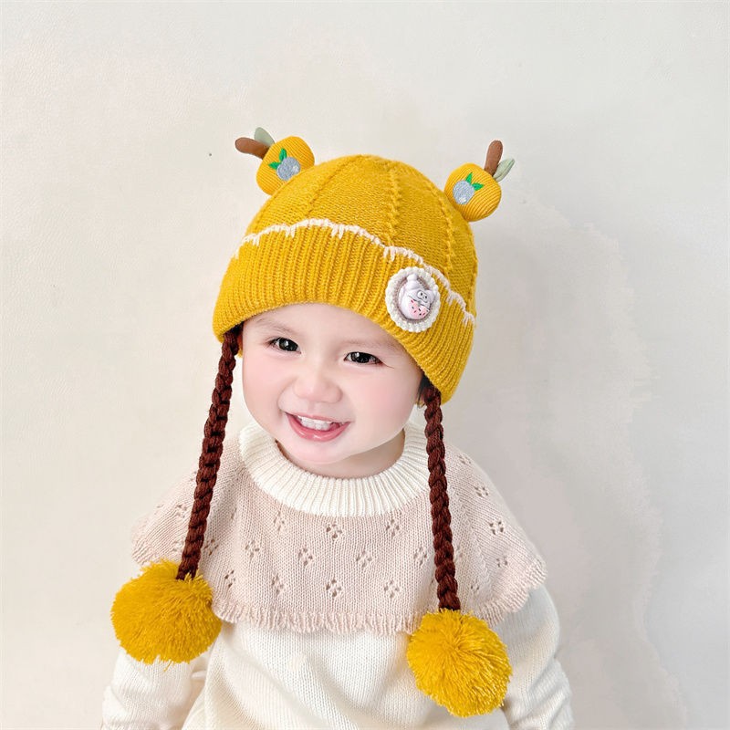 아기의 모자 가을과 겨울 귀 보호 두꺼운 따뜻한 양모 니트 귀여운 가발 아기 풀오버 따뜻한 슈퍼 귀여운스토어 가기