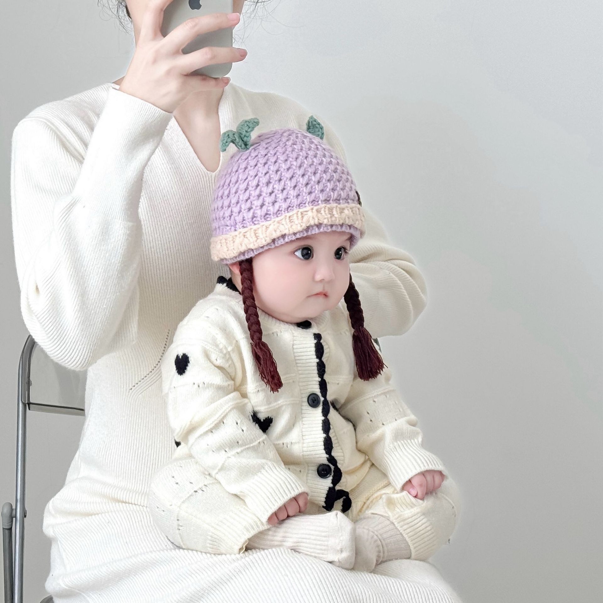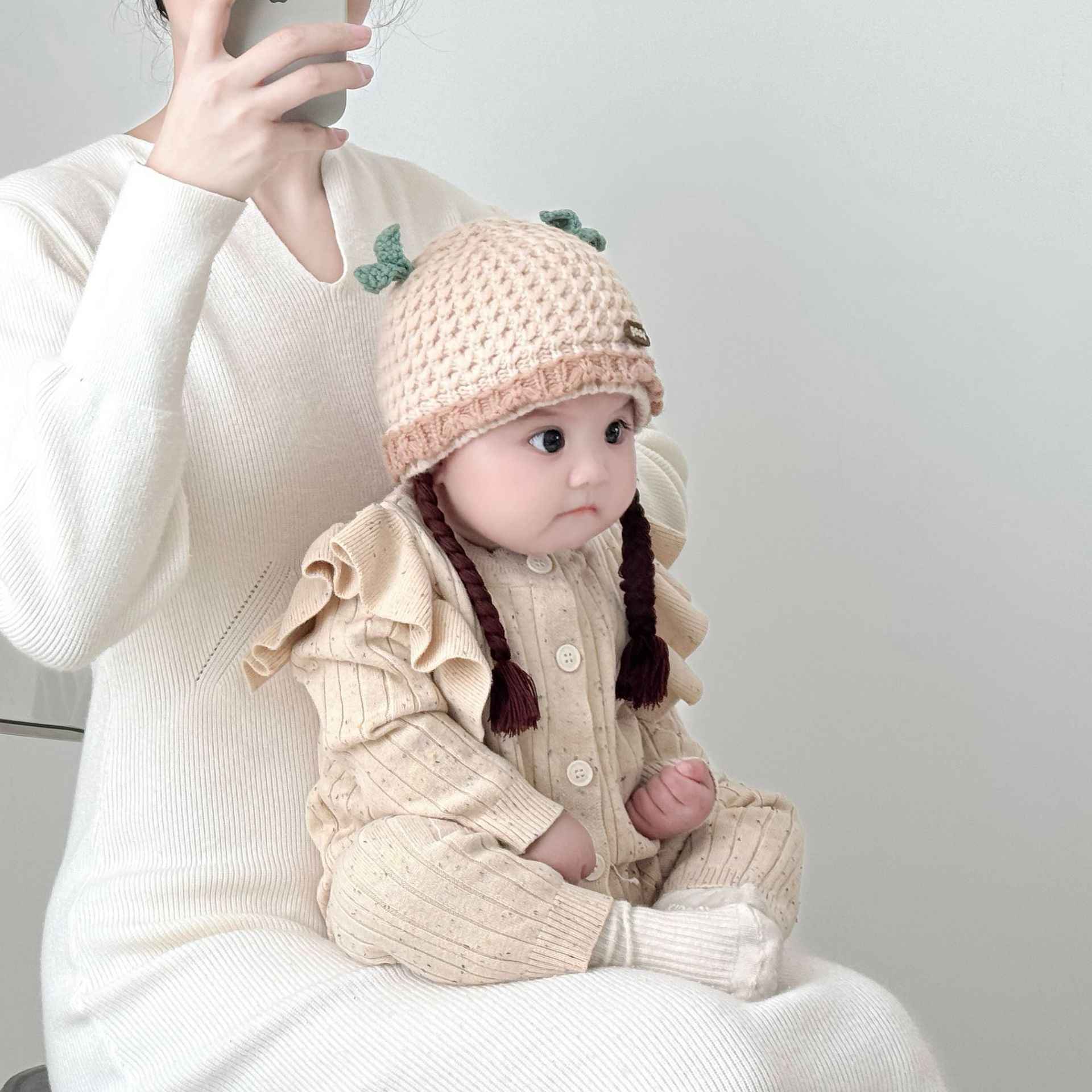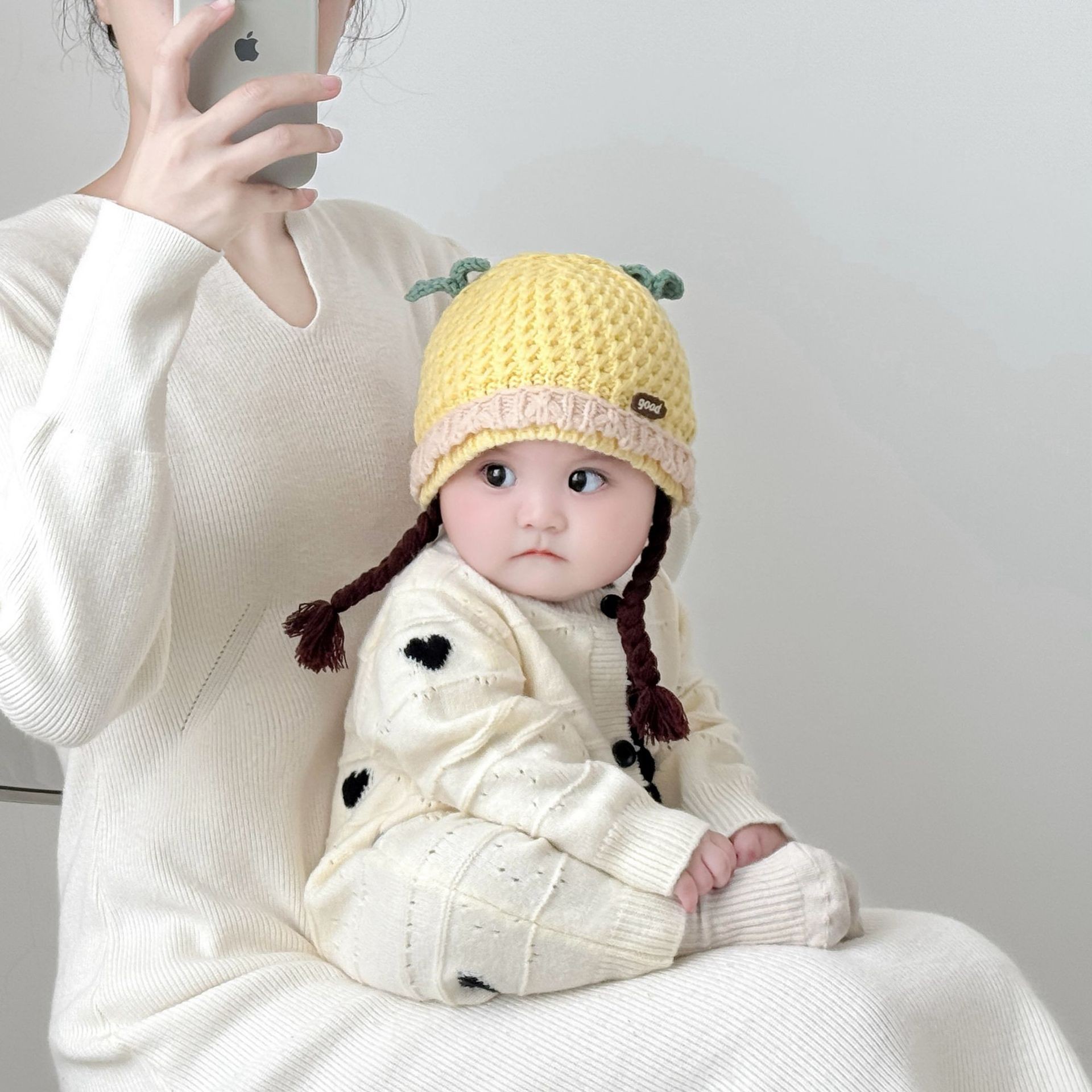 아기의 모자 가을과 겨울 귀 보호 두꺼운 따뜻한 양모 니트 귀여운 가발 아기 풀오버 따뜻한 슈퍼 귀여운스토어 가기
