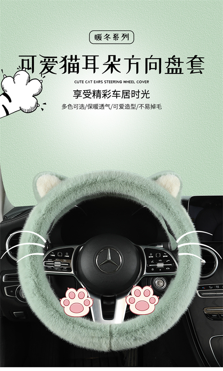 2023 새로운 고양이 귀 플러시 겨울 자동차 핸들 커버 사계절 머리카락 세대스토어 가기