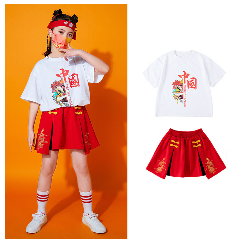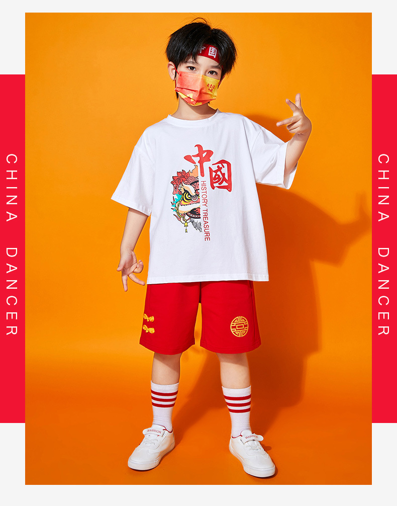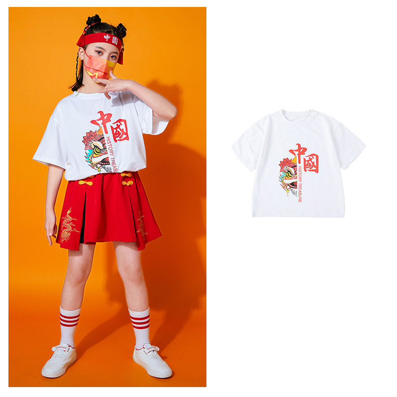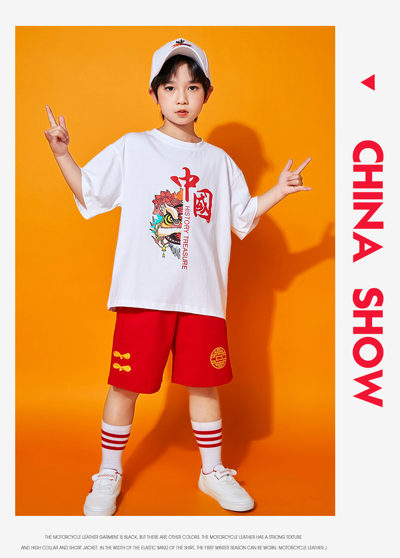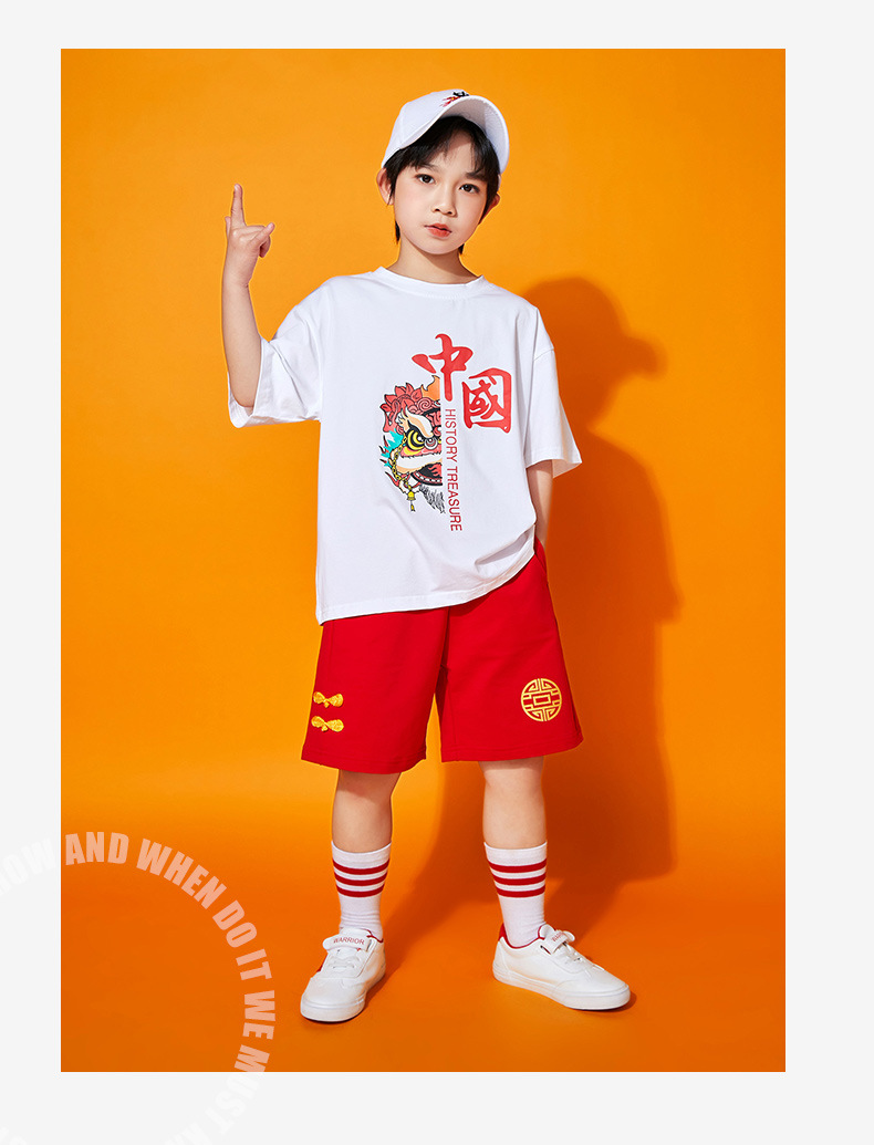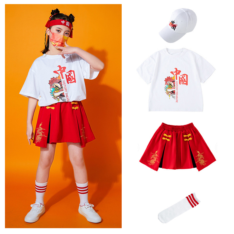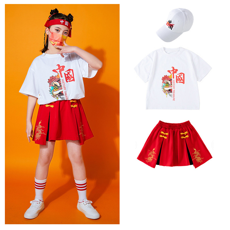 • 8199 화이트 라이온 반팔 + 8238 레드 원피스 + 화이트 중국 야구 모자