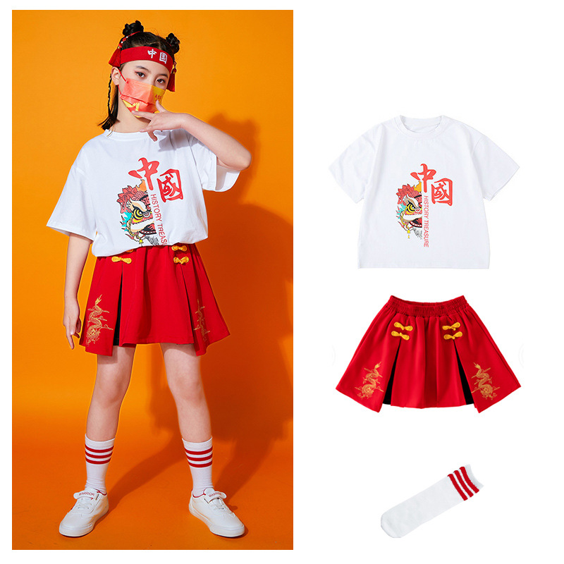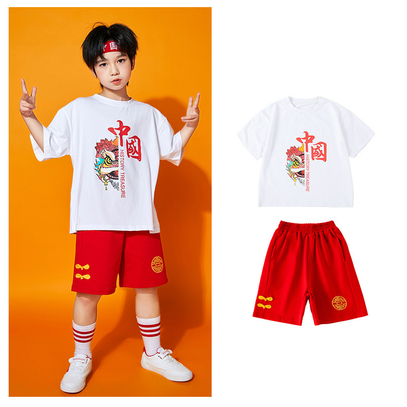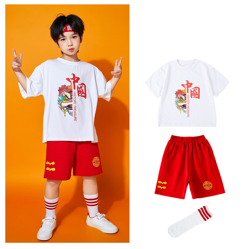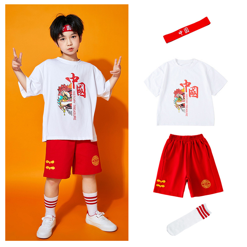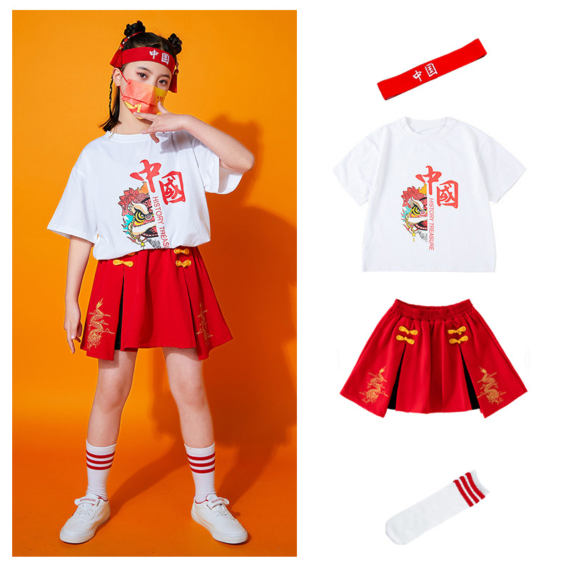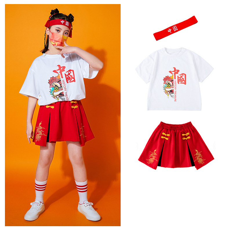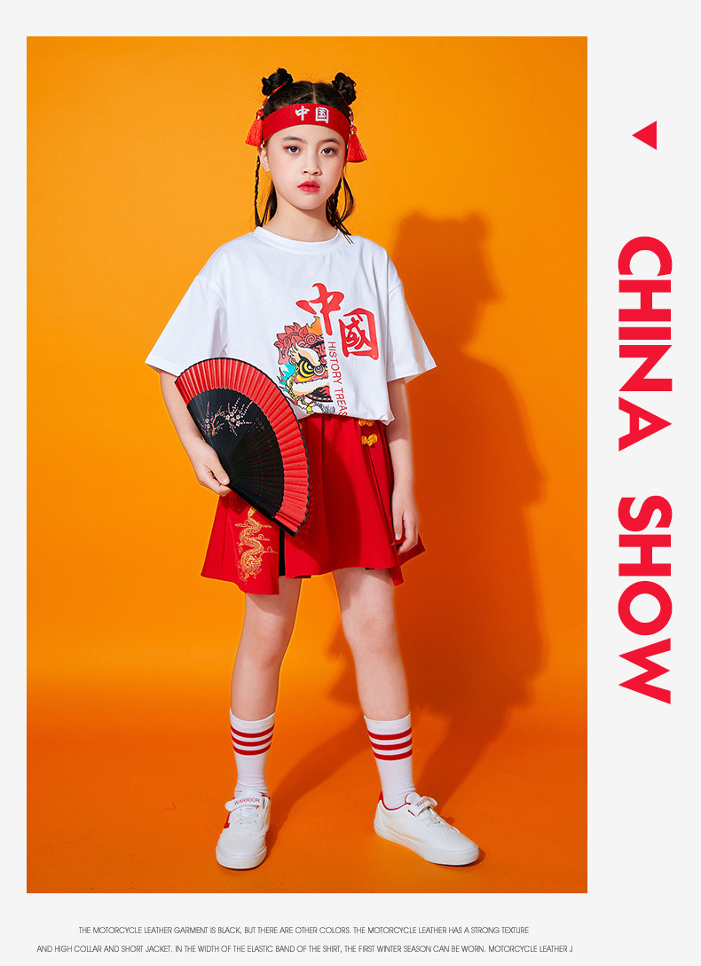 • 8199 화이트 라이온 반팔 + 8238 레드 원피스 + 화이트 중국 야구 모자