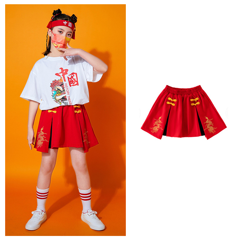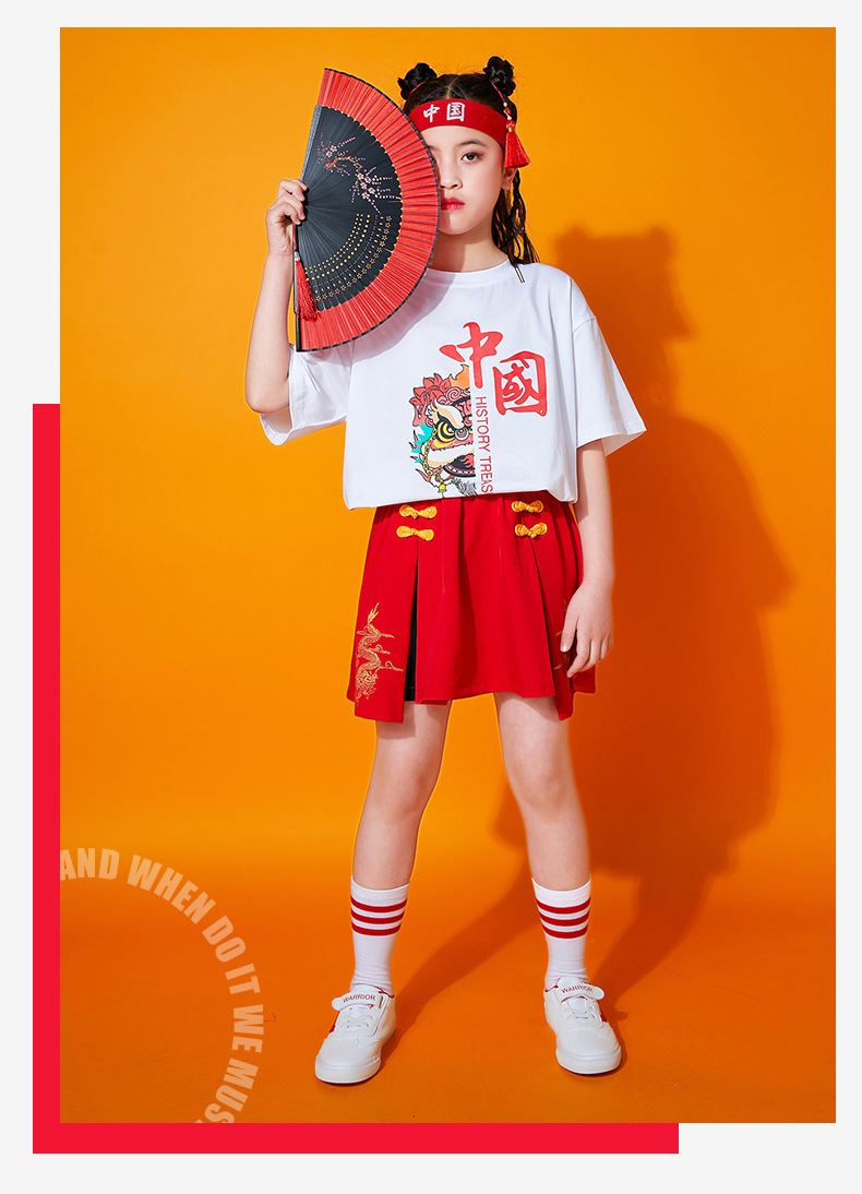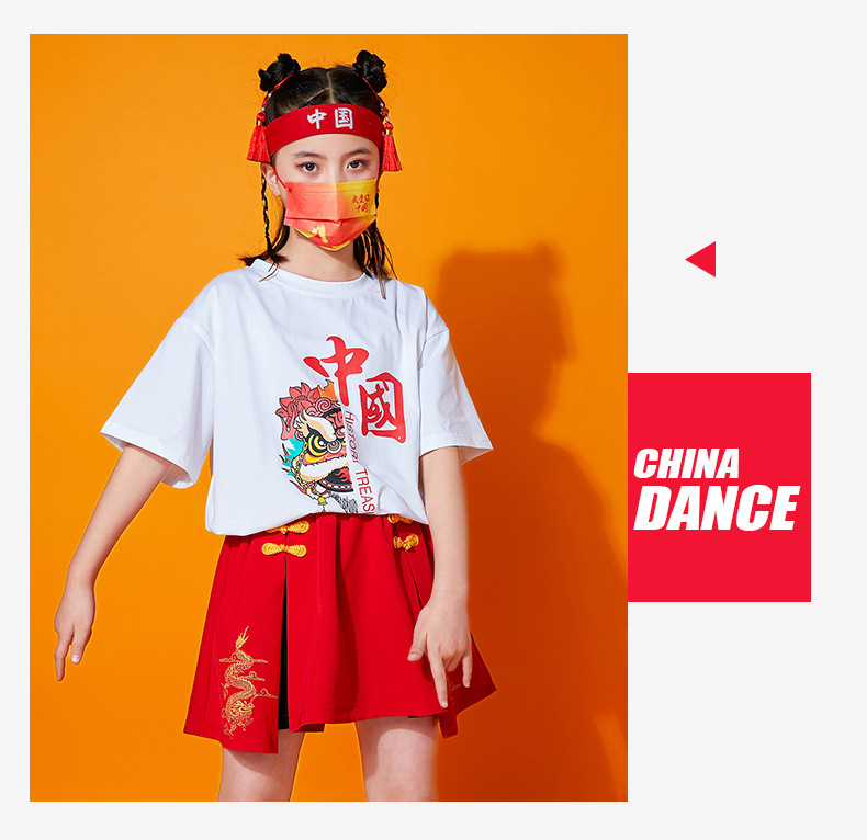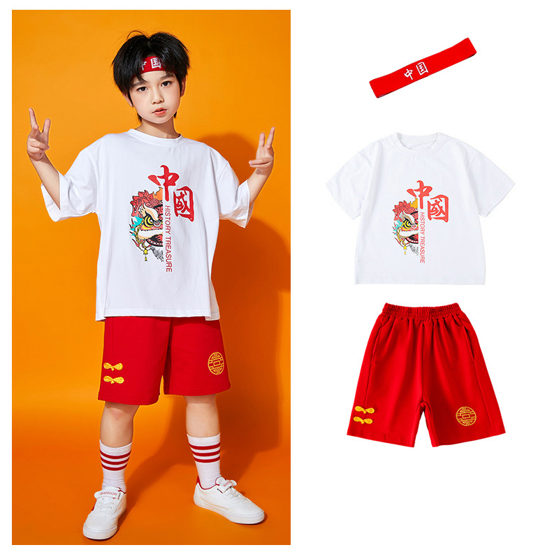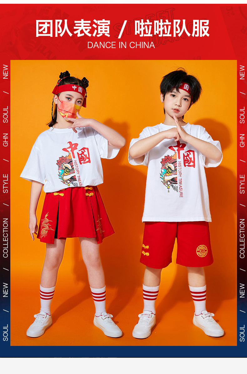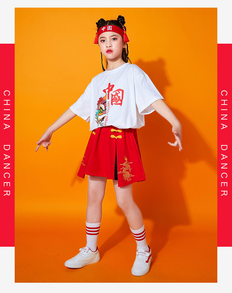• 8199 화이트 라이온 반팔 + 8238 레드 원피스 + 화이트 중국 야구 모자