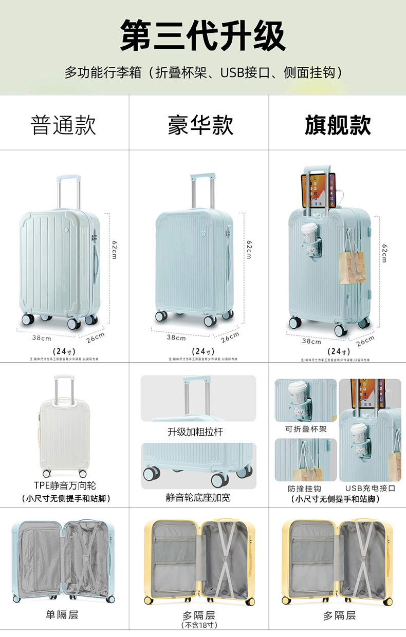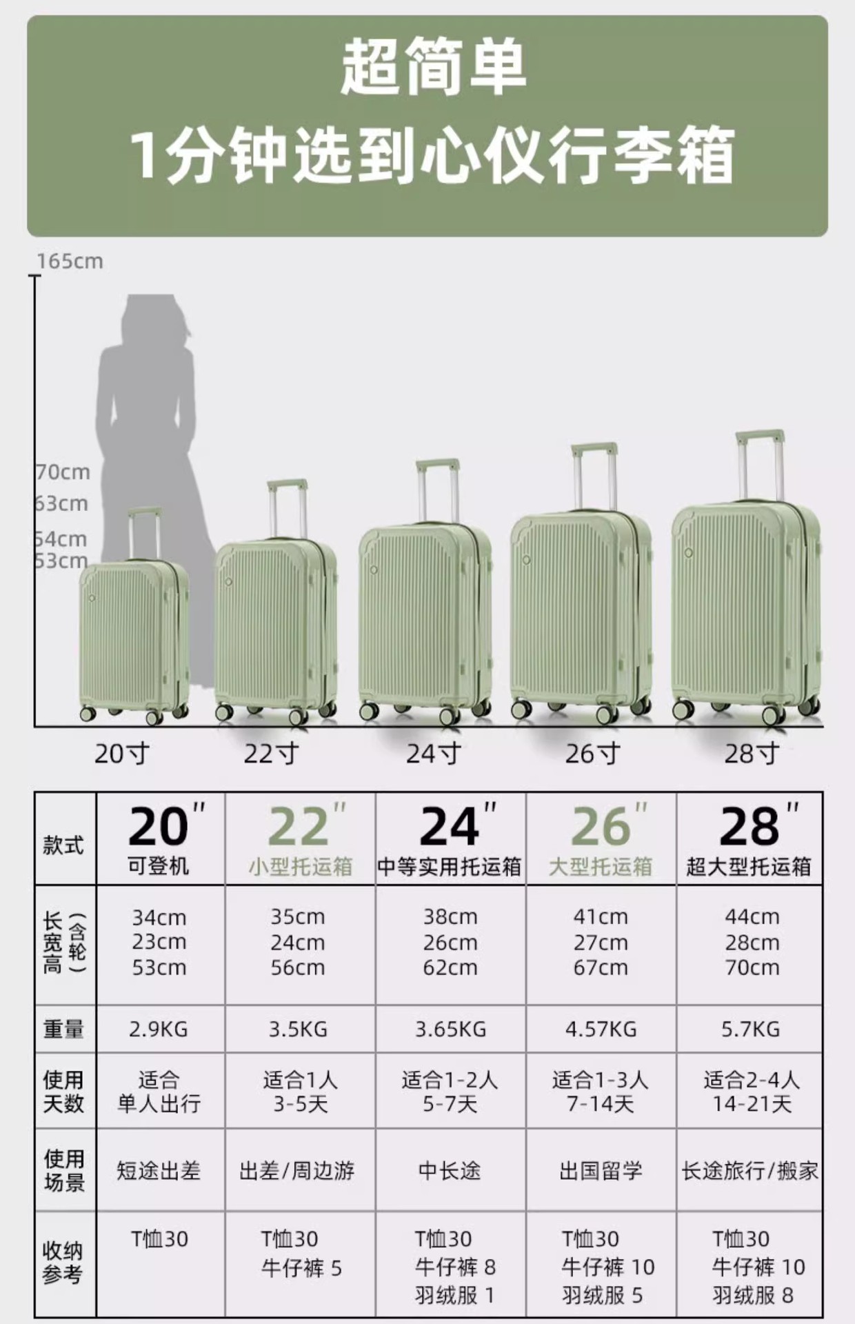 • 24inch (10일 이내 여행에 적합, 일상생활에서 사용하기 좋은 골드 사이즈)