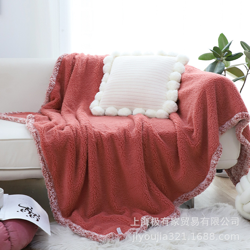 가을과 겨울 부드러운 꽃 양고기 양털 두꺼운 담요 소파 담요 봉제 담요 단색 낮잠 담요 레저 담요