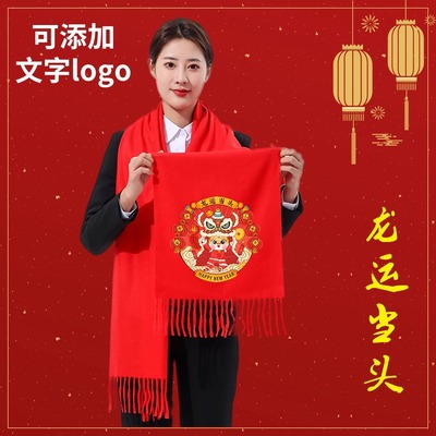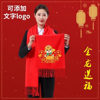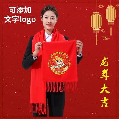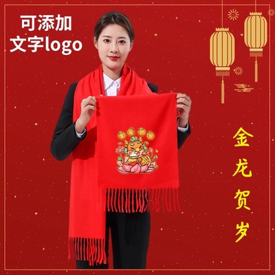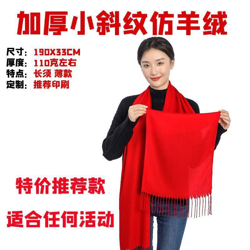 중국어 빨간 스카프 사용자 정의 로고 인쇄 비즈니스 오프닝 축하 이벤트 모조 캐시미어 연례 회의 선물 스카프 자수