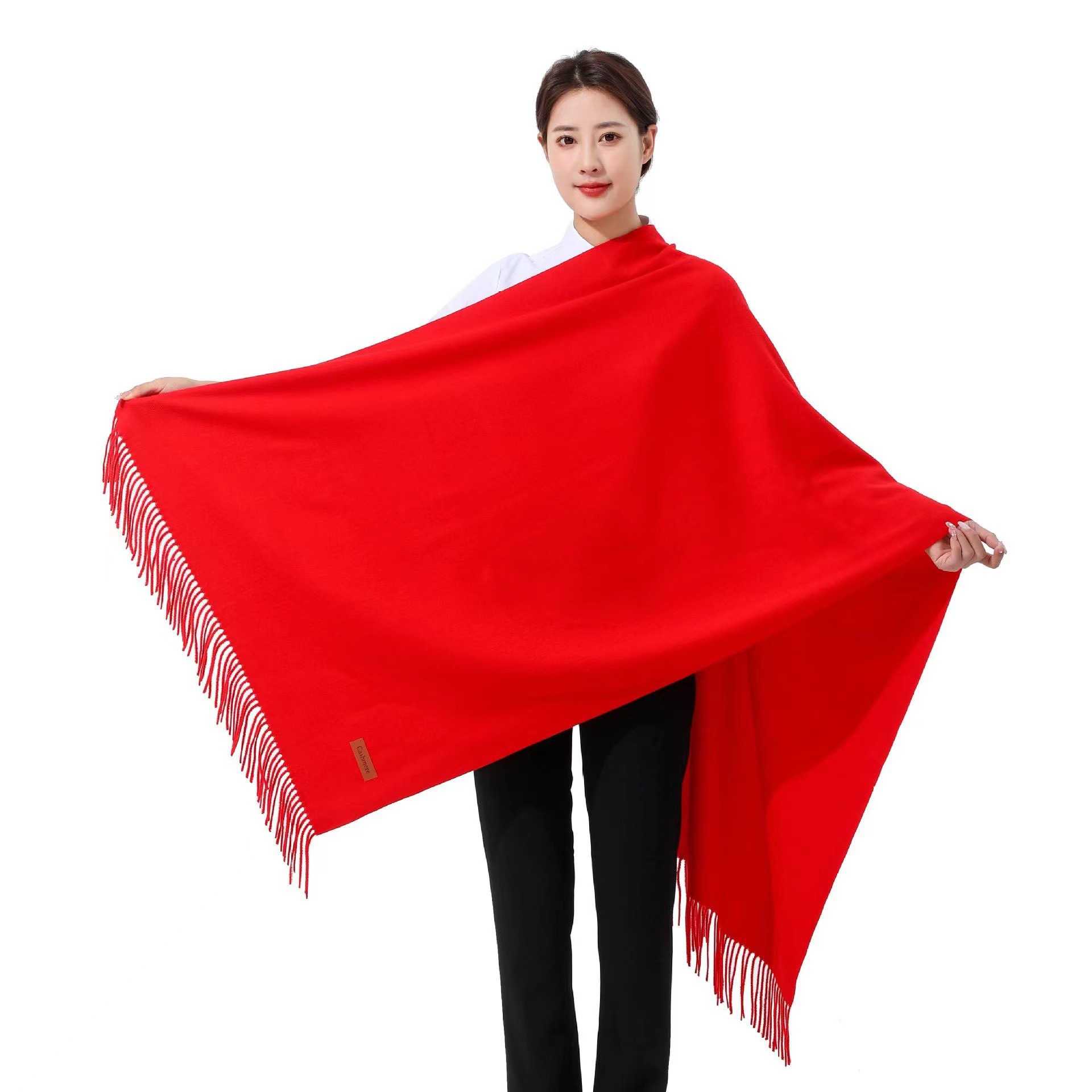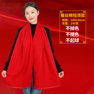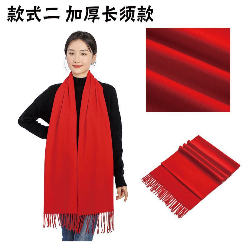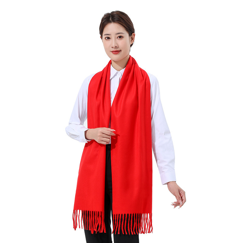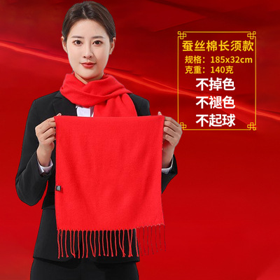 중국어 빨간 스카프 사용자 정의 로고 인쇄 비즈니스 오프닝 축하 이벤트 모조 캐시미어 연례 회의 선물 스카프 자수스토어 가기