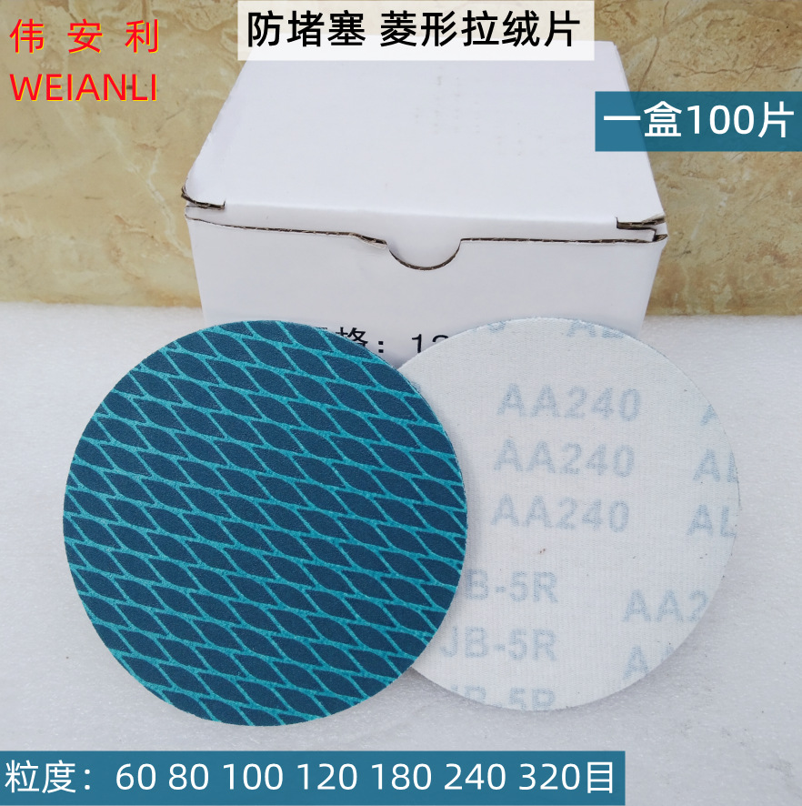 特点:犀利牌菱形超强防堵塞砂纸片具有超强的防堵塞效果,自动脱屑、锋利耐磨的特点,非常适合墙面打磨用,不容易在打磨的时候被灰尘堵塞住。其独特的外形并且拥有国家专利的菱形纹路是圆盘砂纸片领域的一个突破,极大的提高了产品打磨、抛光时的防堵塞效果,又降低了因产品磨削过程中高速运转产生的高温,达到了打磨金属不发黑,更体现产品的锋利与耐磨的特性。