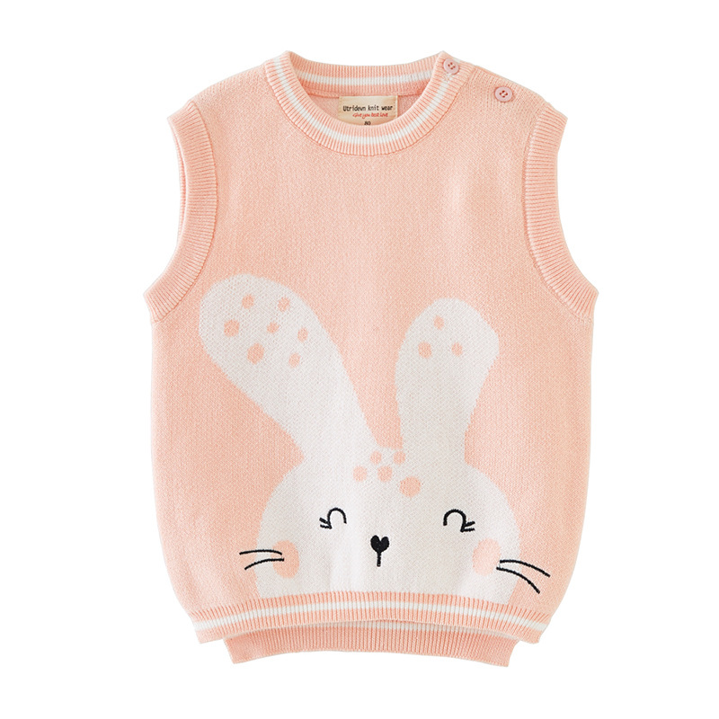 2023 봄 가을과 겨울 아동복 클래스 코튼 어린이 스웨터 조끼 귀여운 흰색 토끼 여아 니트 조끼 조끼