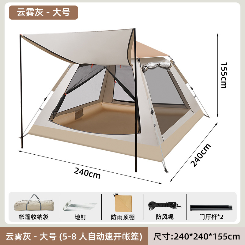 야외 텐트 야영용 캠핑 천막 2-in-1 3-4인용 휴대용 방수 접이식 자동 캠핑 장비