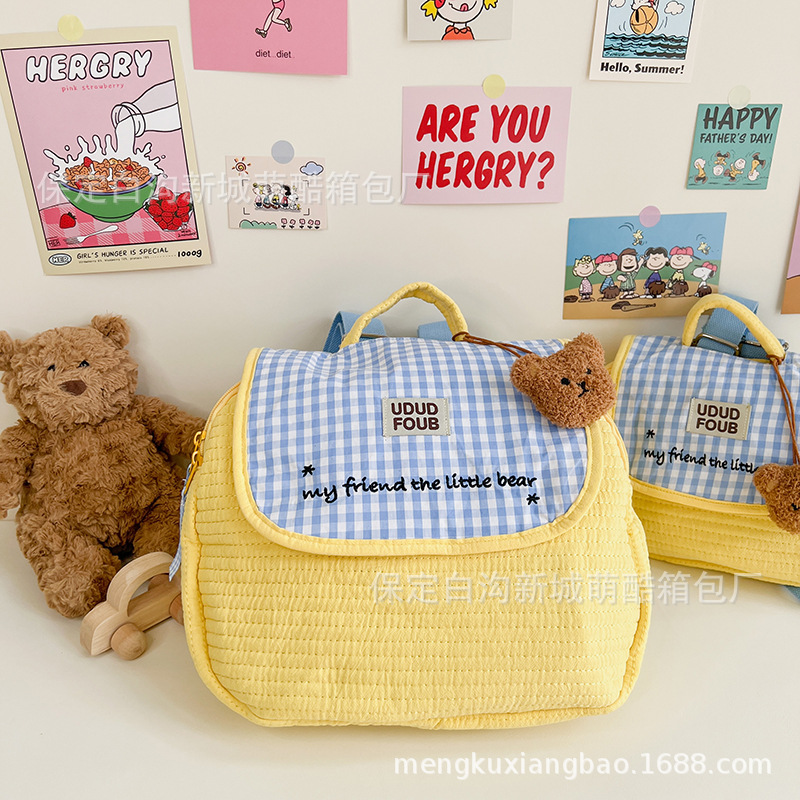 책가방 유치원 한국 퀼트 어린이 배낭 귀여운 격자 무늬 소녀의 작은 배낭 부모-자식 미라 가방