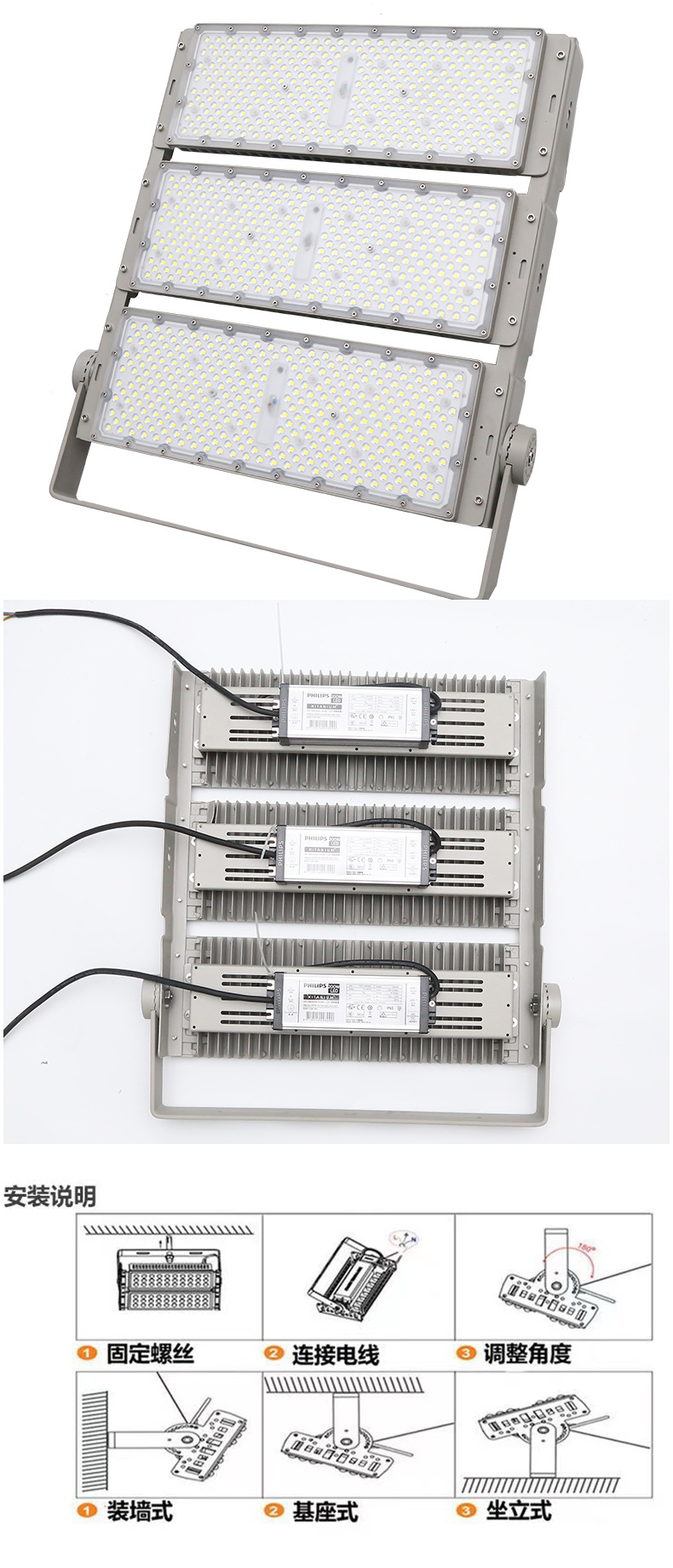 Led 모듈 홍수 빛 옥외 고출력 1000W 높은 극 빛 경기장 고속도로 광장 부두 홍수 빛 도매