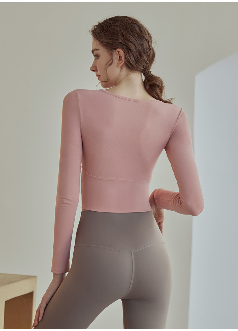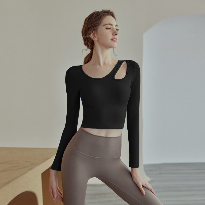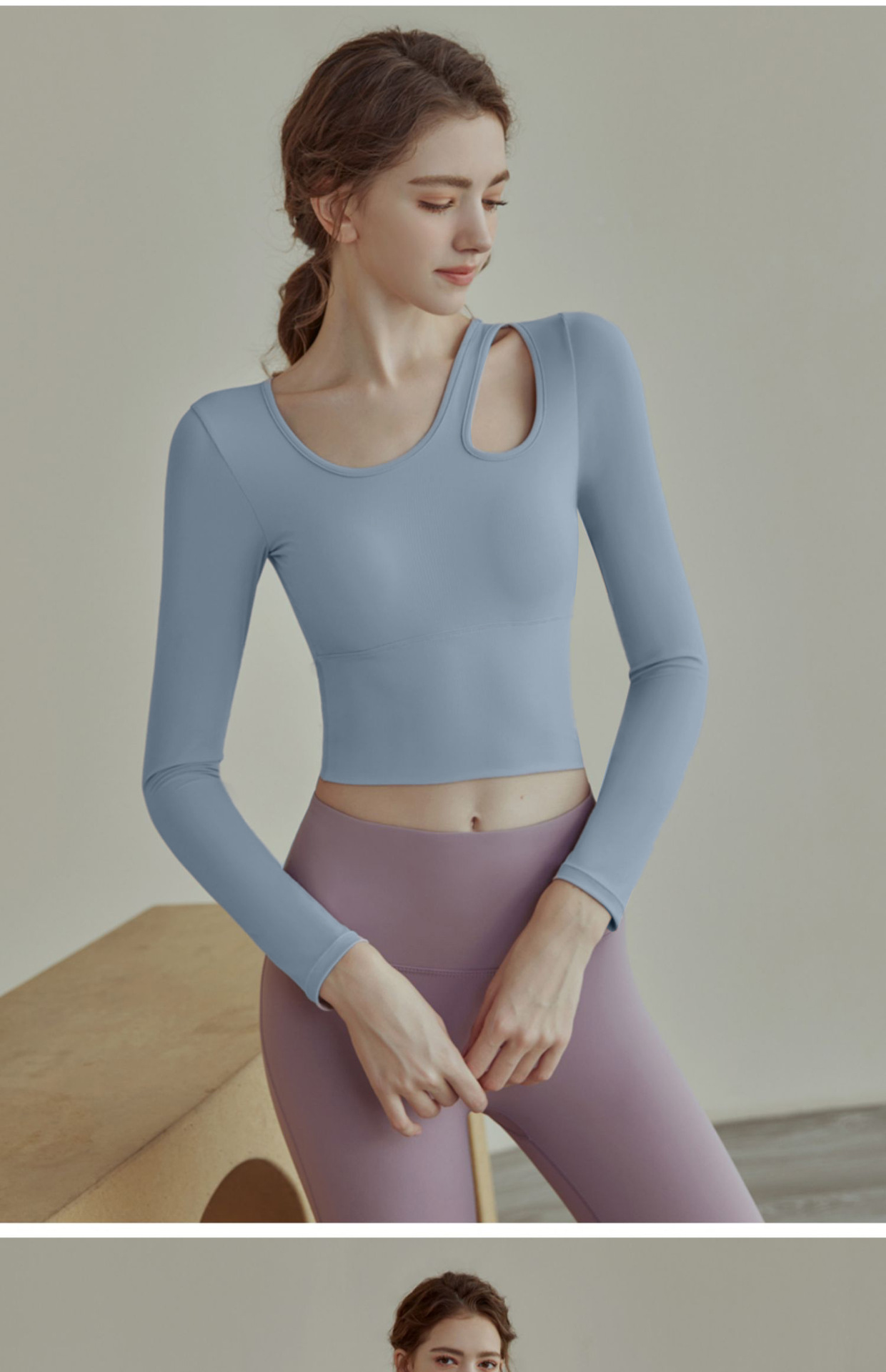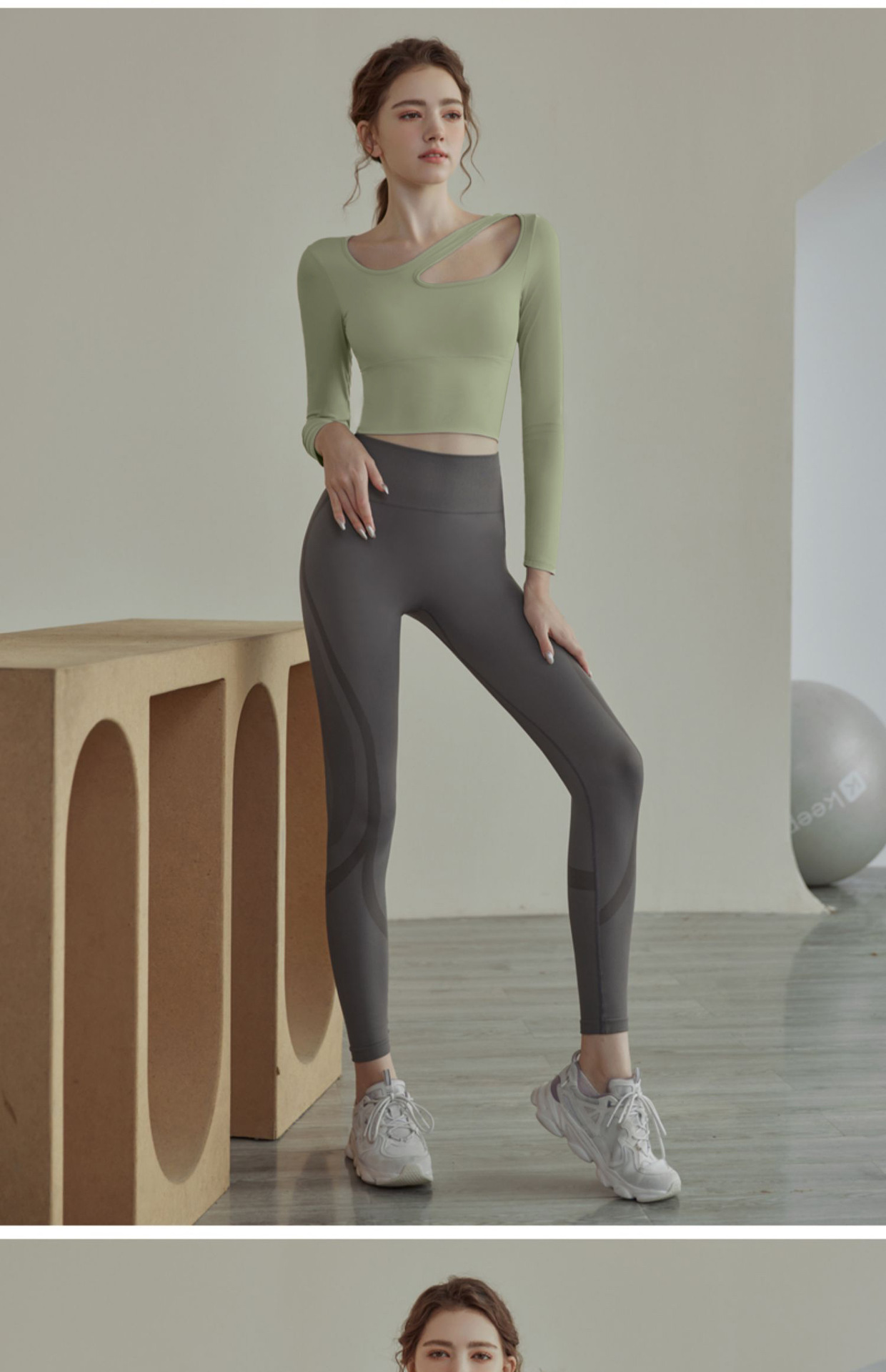 크로스 보더 스포츠 피트니스 긴팔 티셔츠 여성용 유럽 및 미국 러닝 체육관 스트레치 속건 스타킹 요가 의류 탑