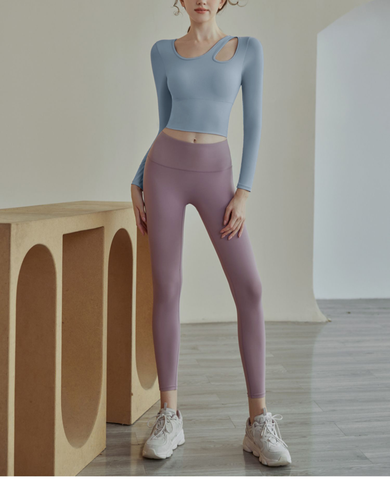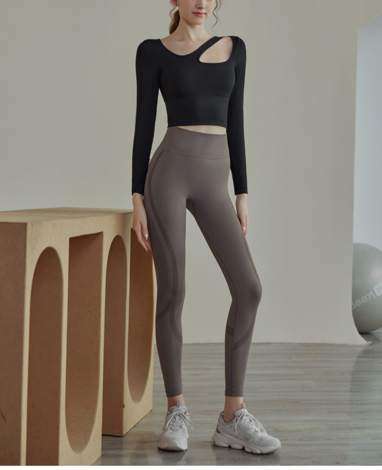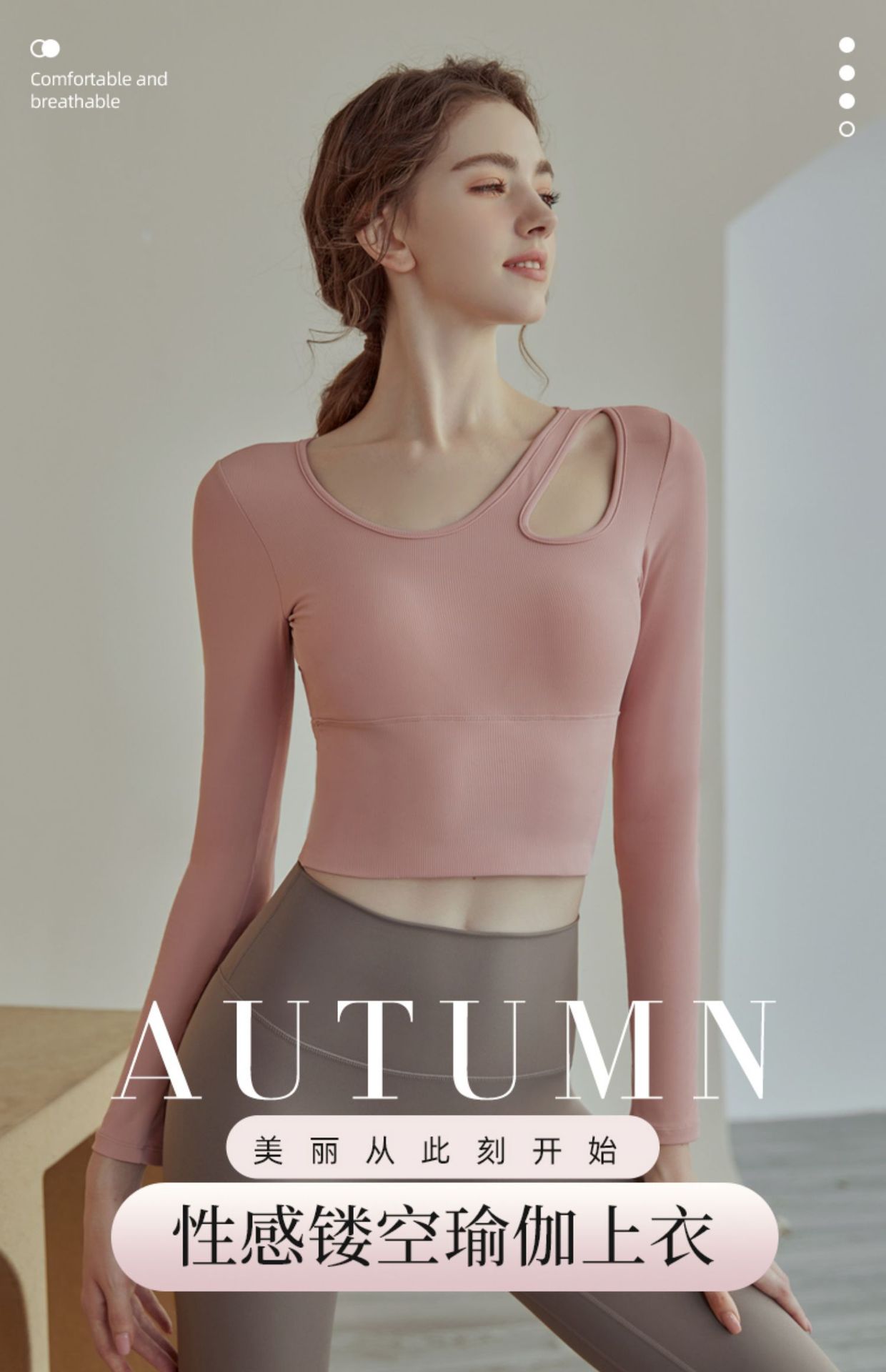 크로스 보더 스포츠 피트니스 긴팔 티셔츠 여성용 유럽 및 미국 러닝 체육관 스트레치 속건 스타킹 요가 의류 탑