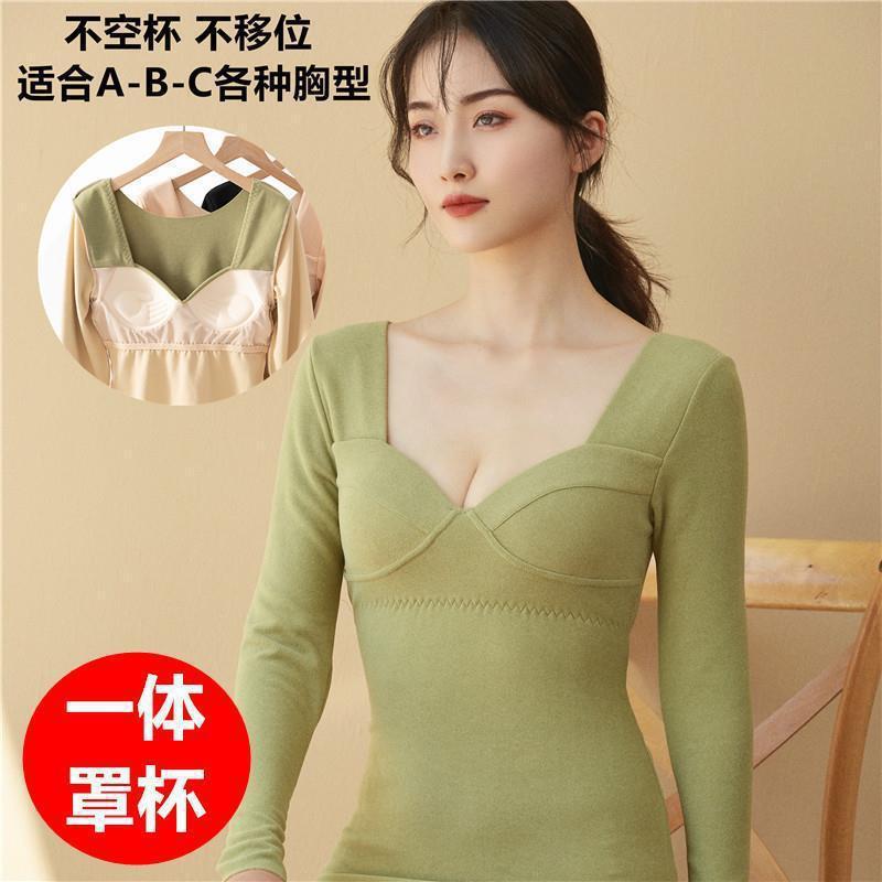 기모 원활한 열 속옷 탑 머리 열대 가슴 패드 여자의 가을 옷 꽉 얇은 겨울 낮은 칼라 베이스 셔츠