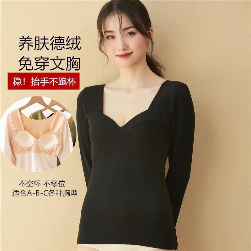 기모 원활한 열 속옷 탑 머리 열대 가슴 패드 여자의 가을 옷 꽉 얇은 겨울 낮은 칼라 베이스 셔츠스토어 가기