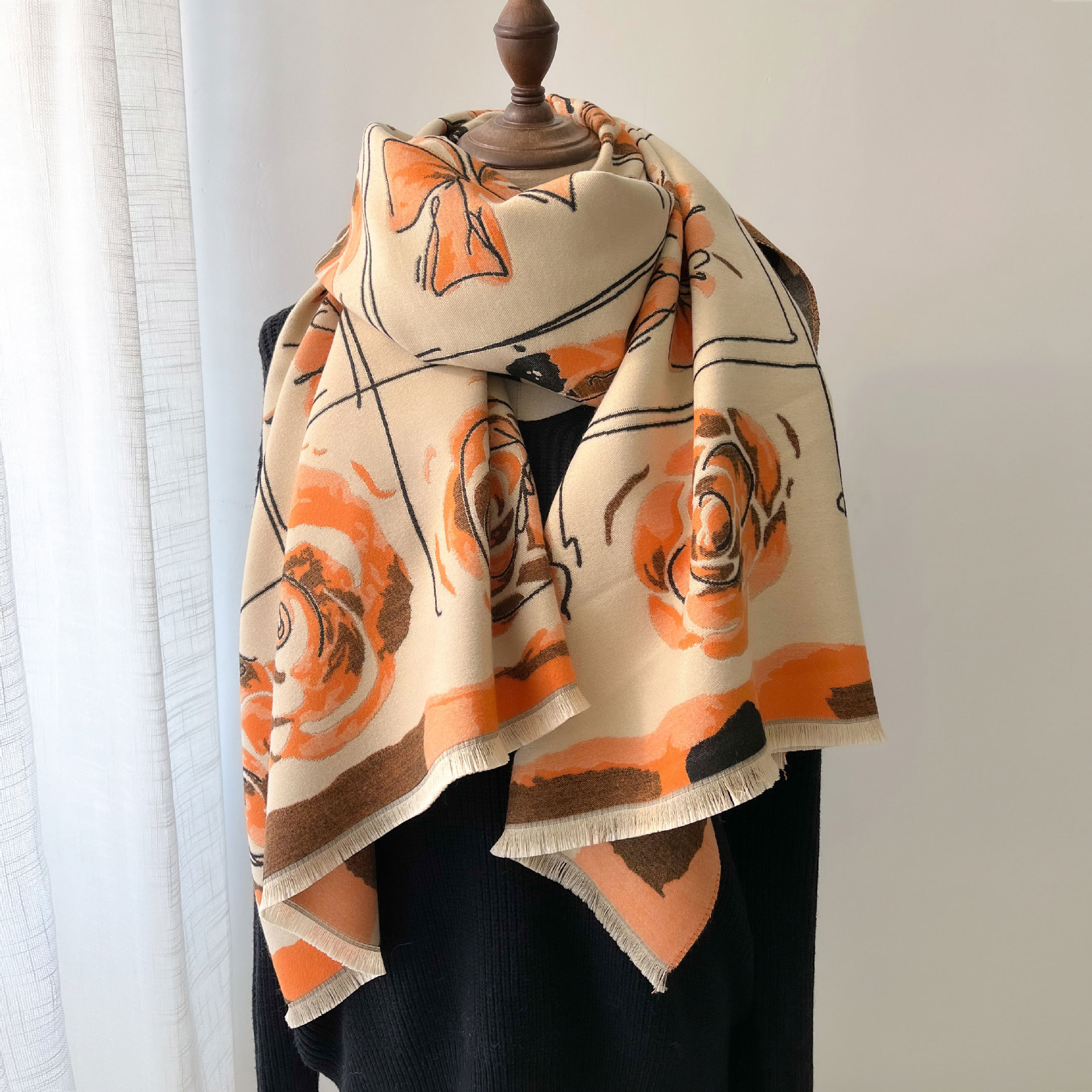 2022 새로운 스타일의 캐시미어 같은 스카프 유행 올 매치 장미 꽃 목도리 여성의 두꺼운 솔질 우아한 따뜻한 스카프스토어 가기