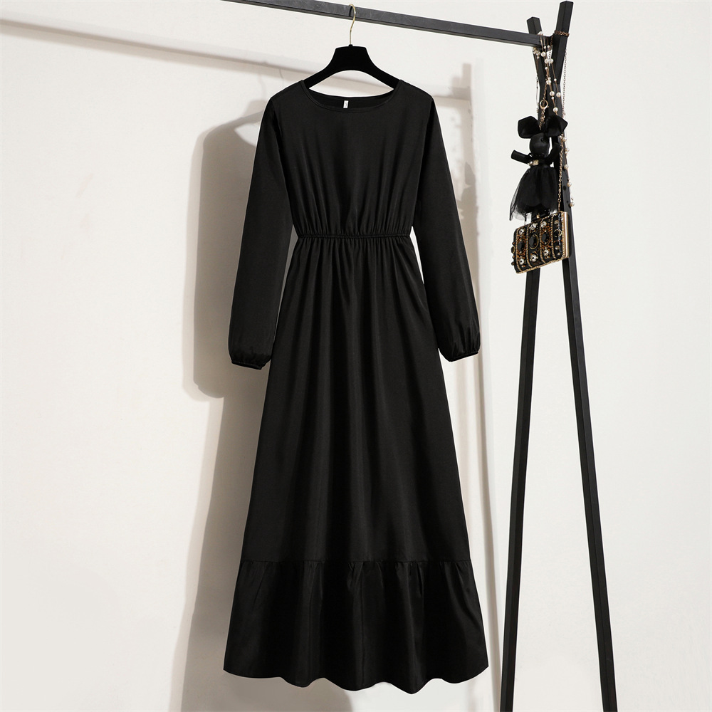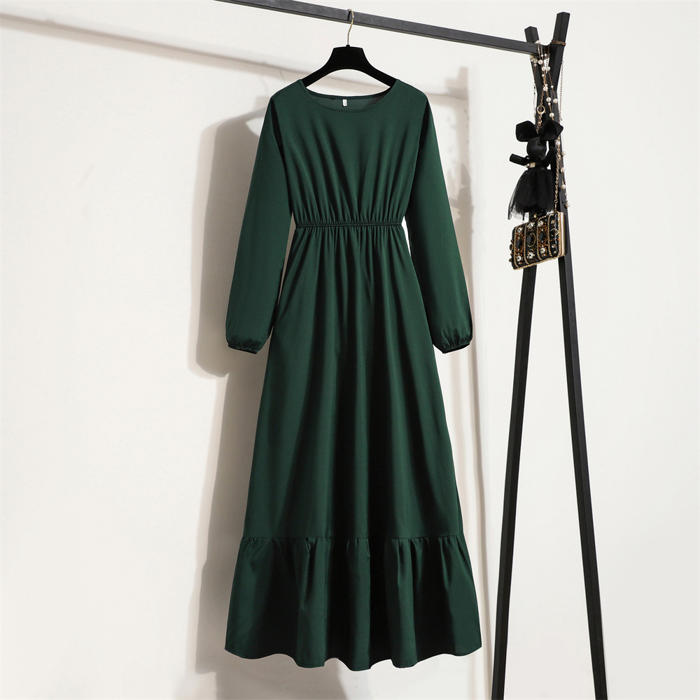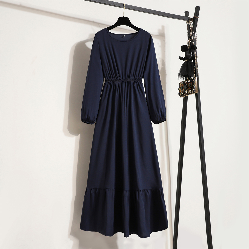 국경 간 해외 무역 AliExpress 여성의 새로운 원피스 단색 풀오버 긴 소매 허리 A-라인 원피스스토어 가기