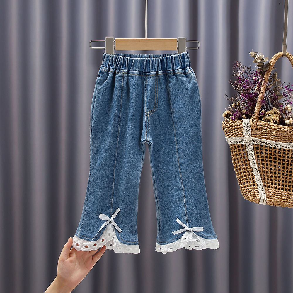 女童牛仔裤2022秋新款女宝宝甜美洋气微喇叭裤小女孩外穿长裤
