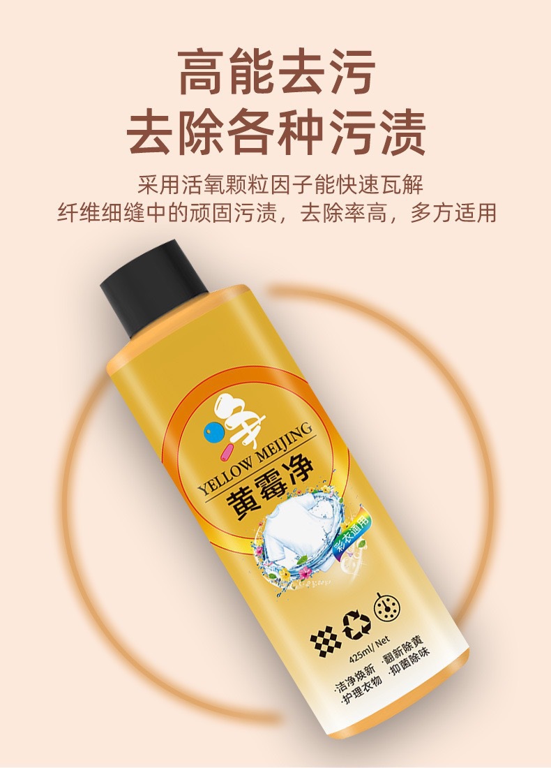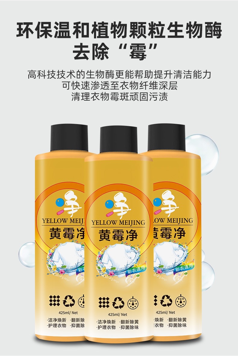 쉐이크 톤 뜨거운 노란색 곰팡이 그물 제거 곰팡이 반점 복권 세탁 액체 세제 활성 효소 데스테인 세제 의류 관리 클리너