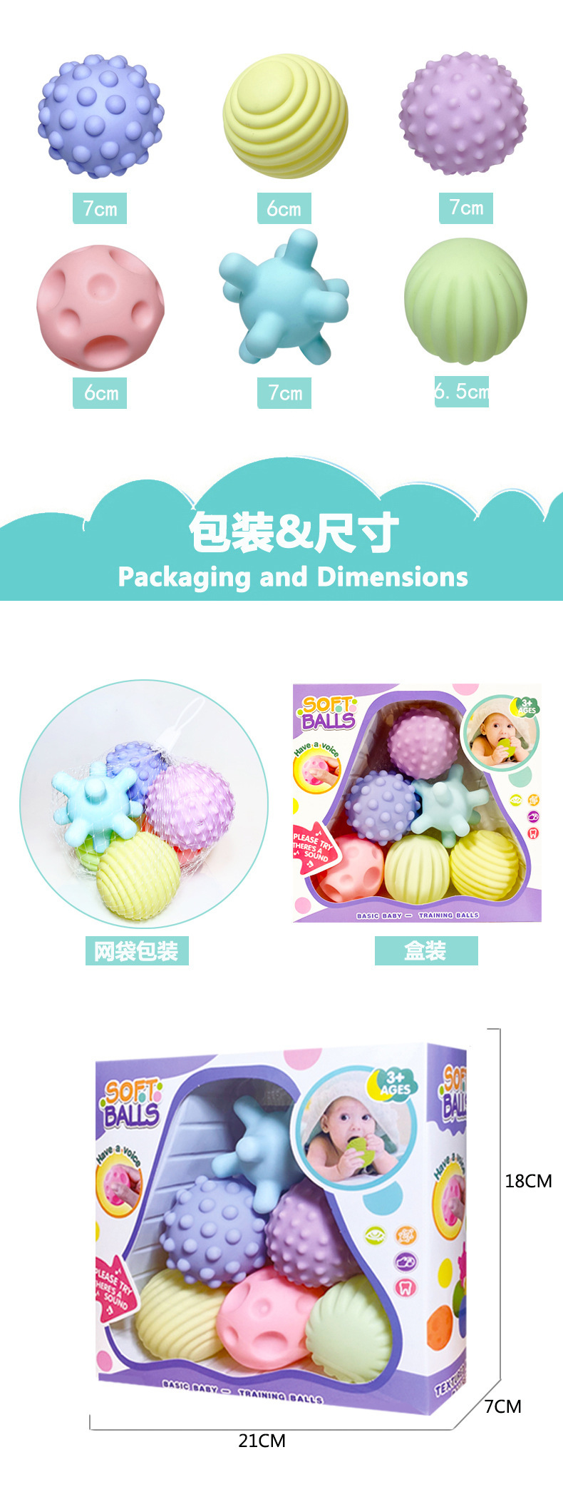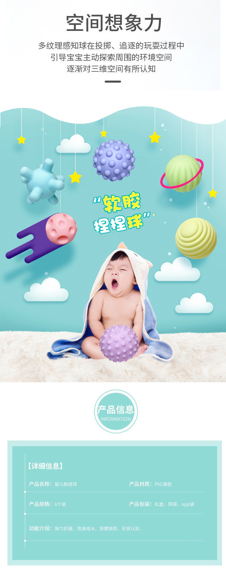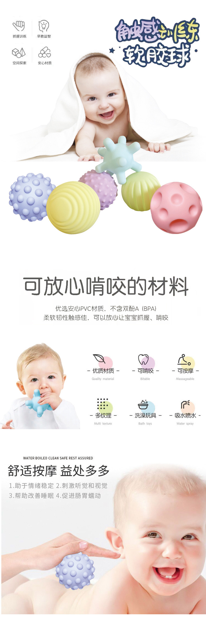 아기 부드러운 고무 터치 볼 맨해튼 핸드 그립 볼 마사지 촉각 인식 아기 놀이 장난감 그립 훈련 공스토어 가기