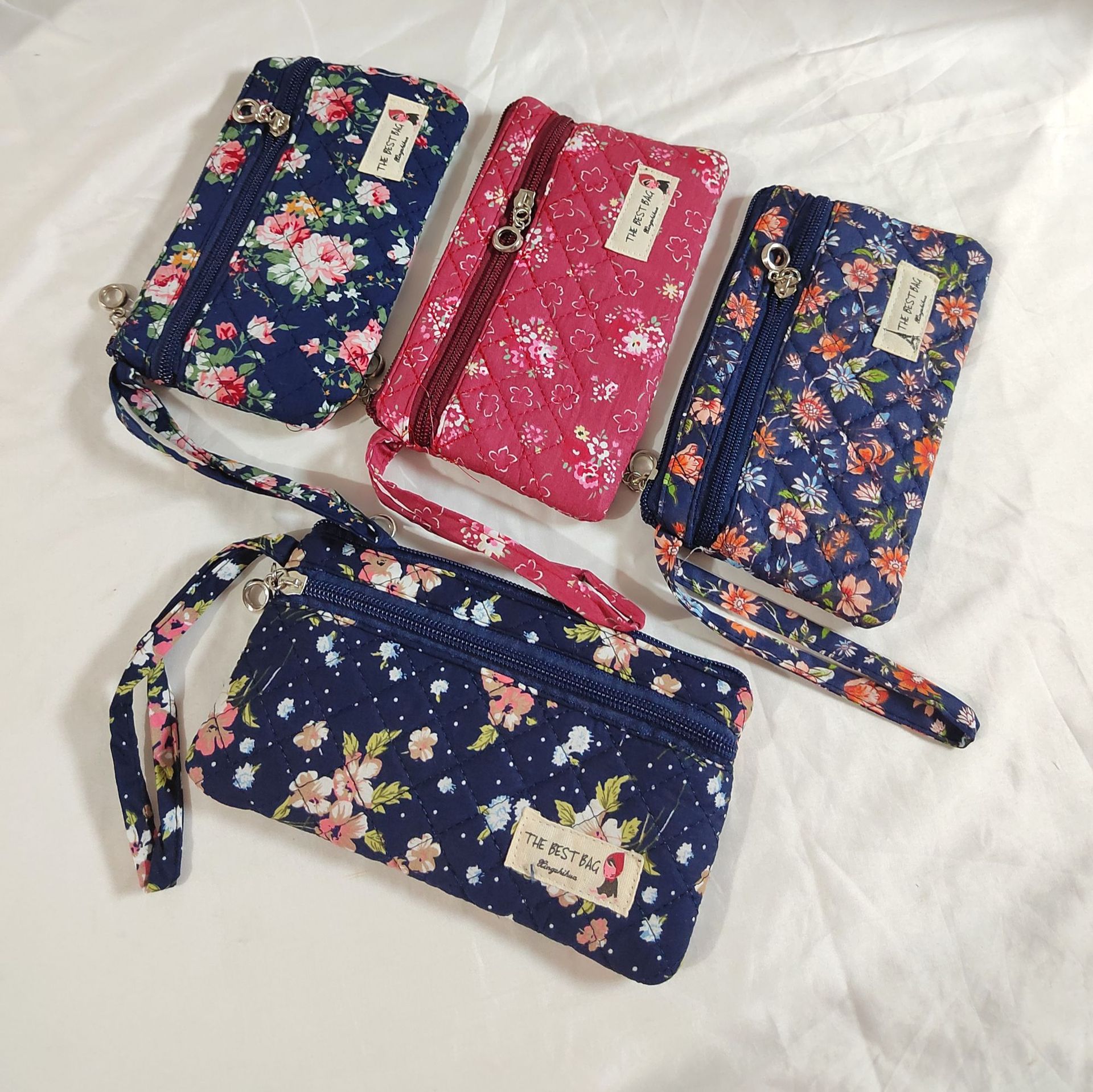 5010 큰 천 휴대 전화 가방 동전 지갑 더블 지퍼 면화 꽃 원단 동전 지갑 휴대 전화 가방 카드 홀더 재고스토어 가기