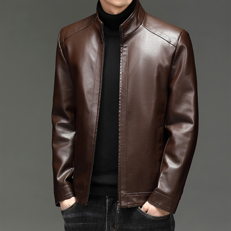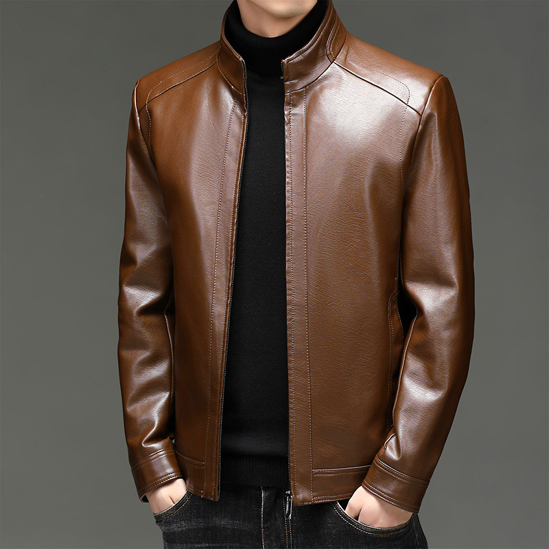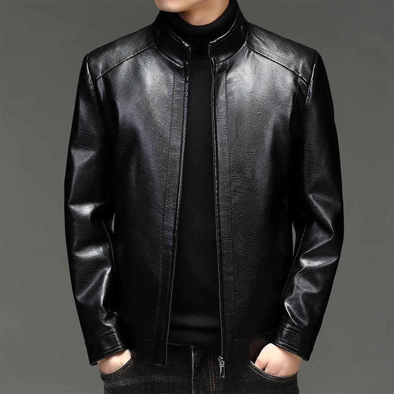 2022 겨울 새로운 남성 가죽 의류 젊은 중년 심플 캐주얼 지퍼 단색 스탠드 칼라 코트 도매스토어 가기