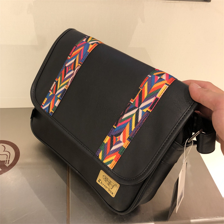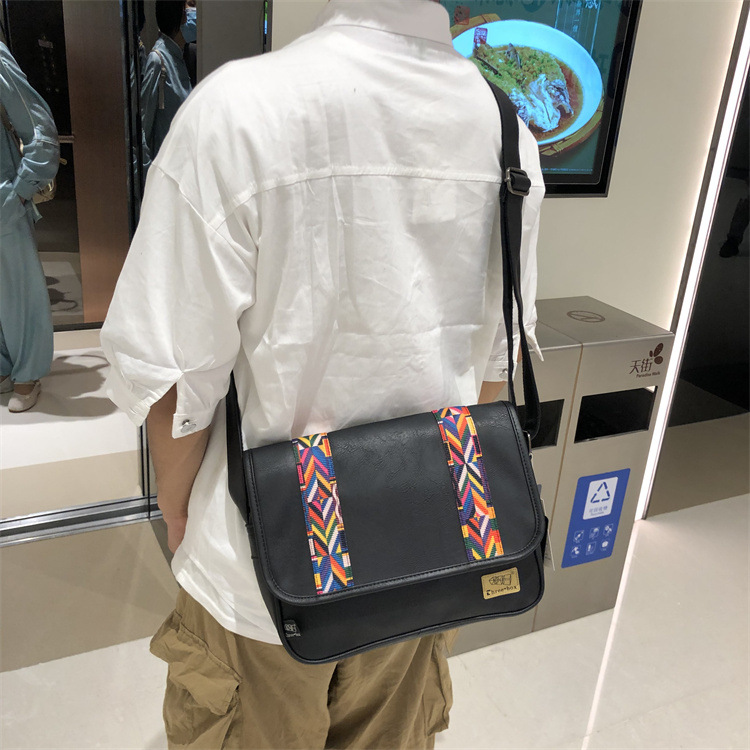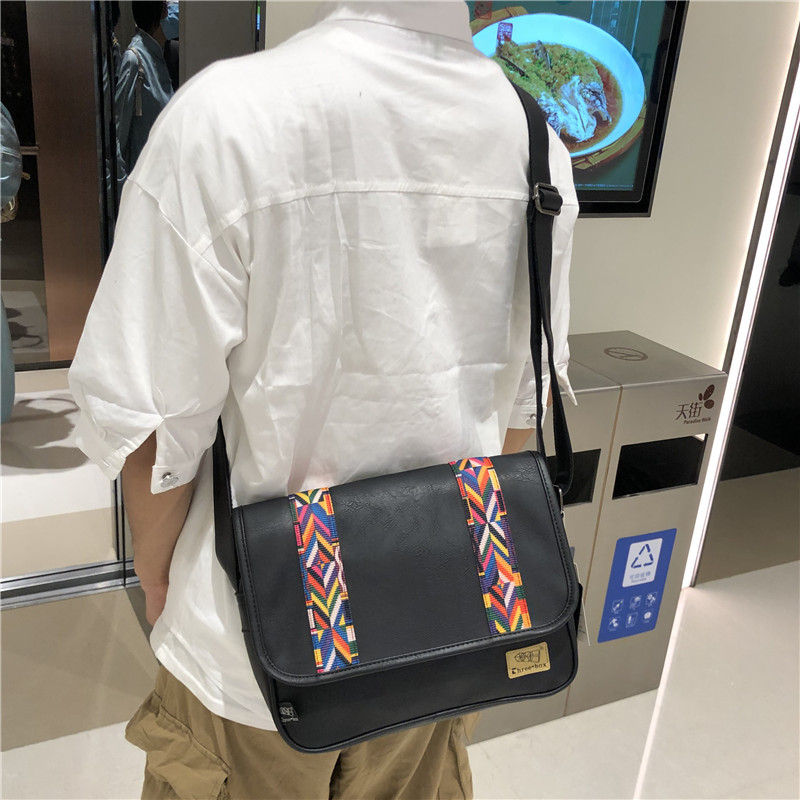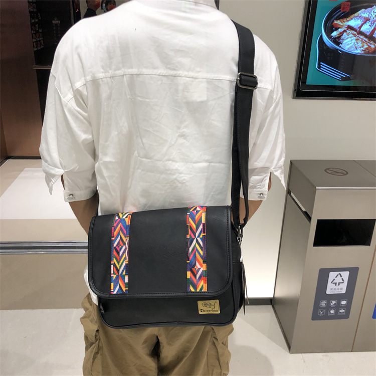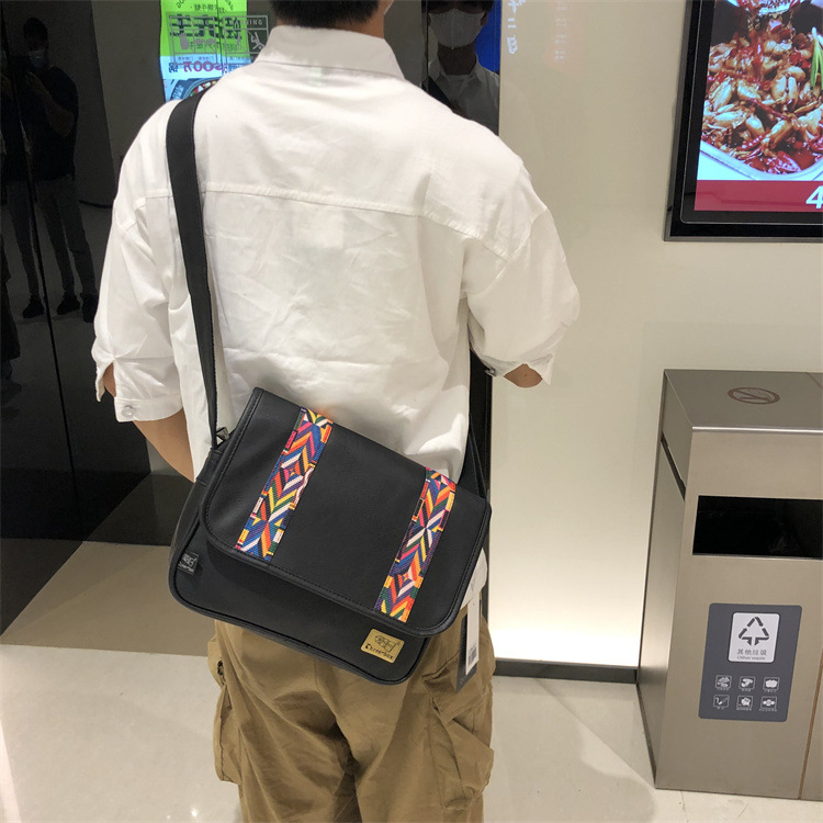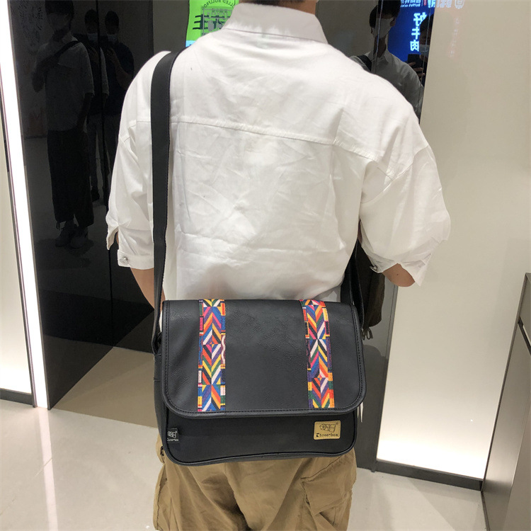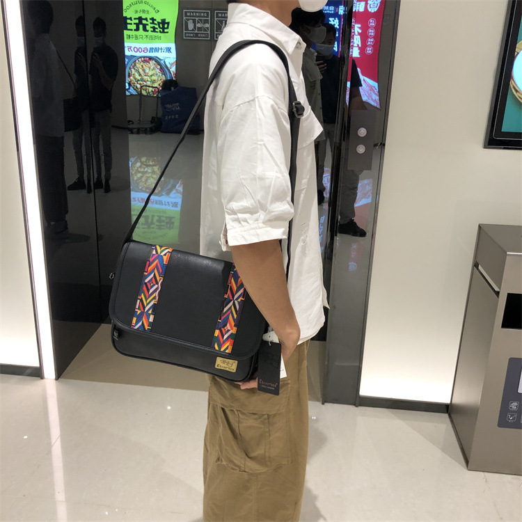 2022时尚男士印花单肩包 休闲斜挎软包民族风斜跨女条纹日韩男包