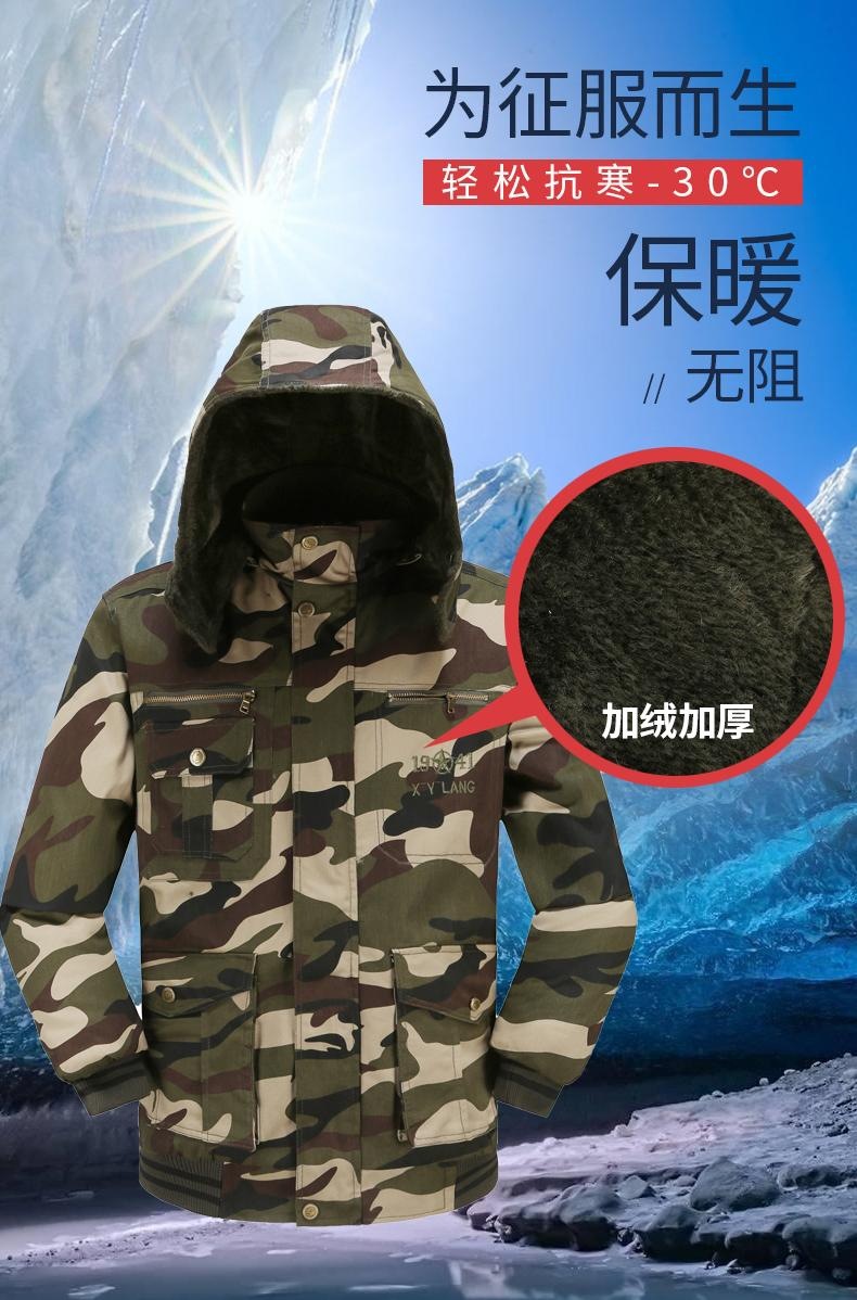 면 패딩 코트 남성 코트 겨울 기모 두꺼운 위장 면 패딩 코트 내마모성 노동 보호 면 패딩 코트 방한 플러스 사이즈 바지