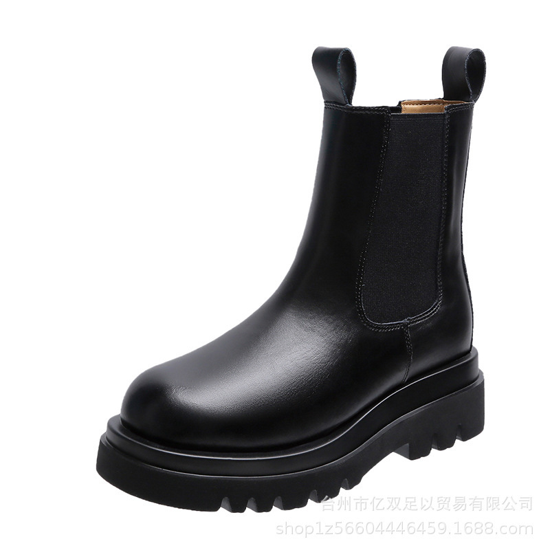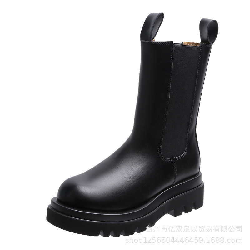 42 플러스 사이즈 연기 튜브 부츠 2022 가을과 겨울 새로운 라운드 헤드 두꺼운 바닥 빛 싱글 부츠 부드러운 가죽 패션 마틴 미드 튜브 여성 부츠