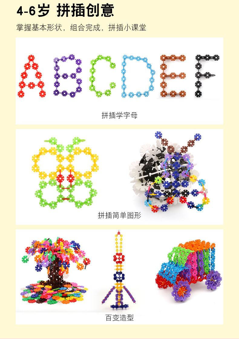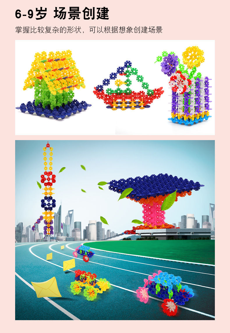 눈송이 조립 빌딩 블록 어린이 플라스틱 조립 중간 두꺼운 소년 소녀 교육 완구 공장 도매스토어 가기