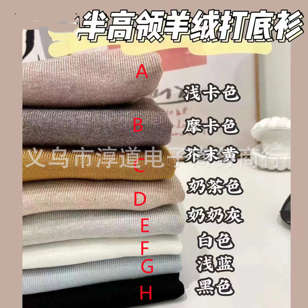 자 패밀리 8 색 하프 하이 칼라 캐시미어 바닥 셔츠 여성 가을 라운드 넥 풀오버 슬림 핏 얇은 하이 스트레치 니트 스웨터스토어 가기