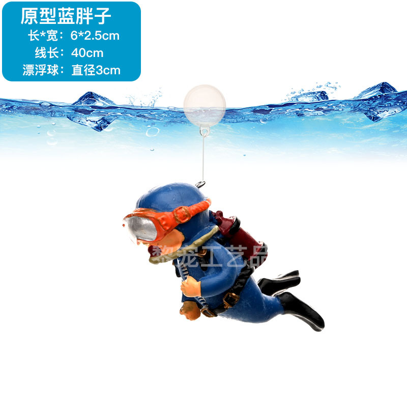 어항 조경 플로팅 다이버 창조적 인 장식 작은 마녀 수중 세계 잠긴 작은 장식품 Wukong 블루 팻 맨