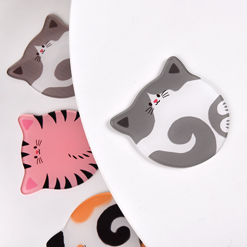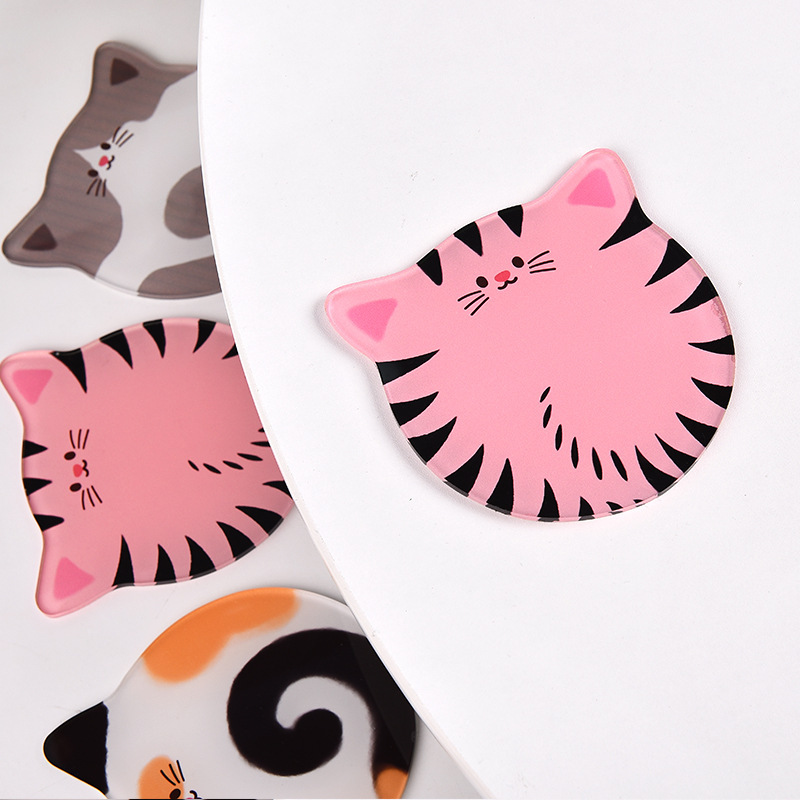 귀여운 만화 아크릴 고양이 귀 코스터 카페 달콤한 가게 거실 창조적 인 단열 매트 촬영 장식품