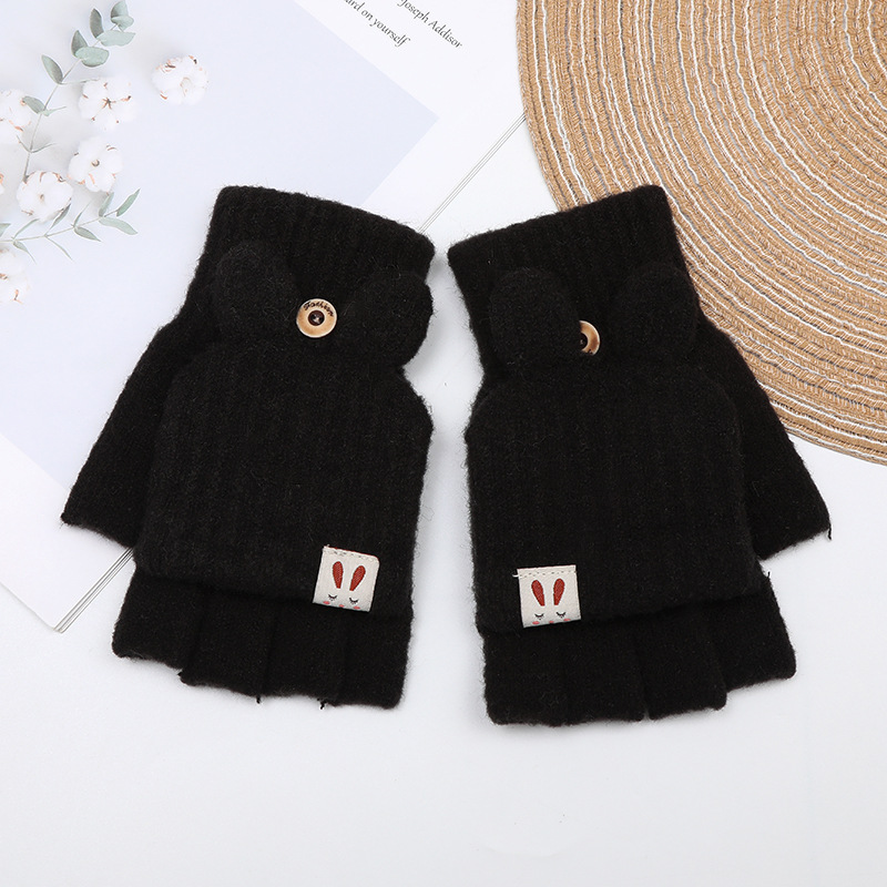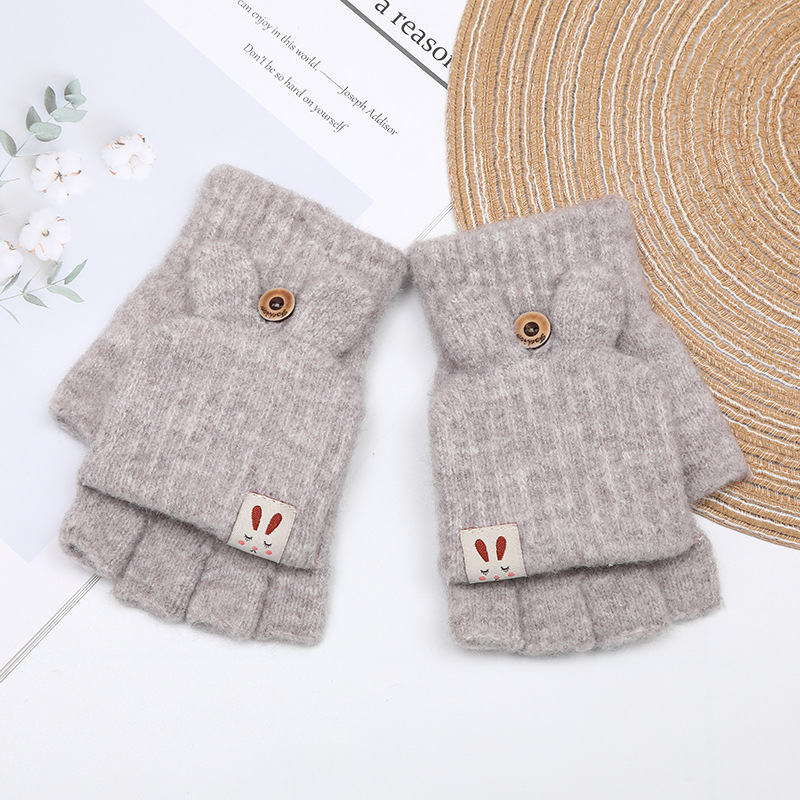 겨울 여성용 캐시미어 따뜻한 장갑 승마 장갑 플립 니트 장갑 모든 매치 자카드 반 손가락 장갑