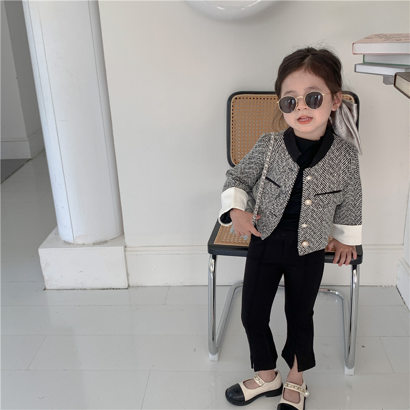 小香风~欧美范女童春秋名媛范人字纹设计感呢短款夹克外套时髦,内搭裤子都有销售~自留!