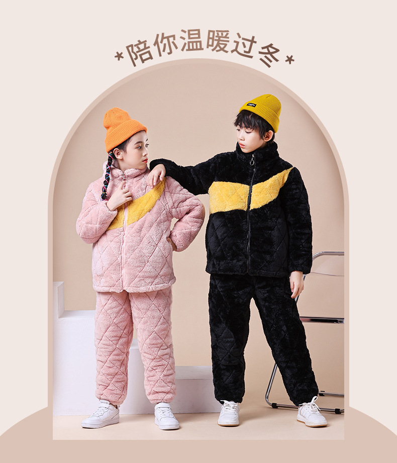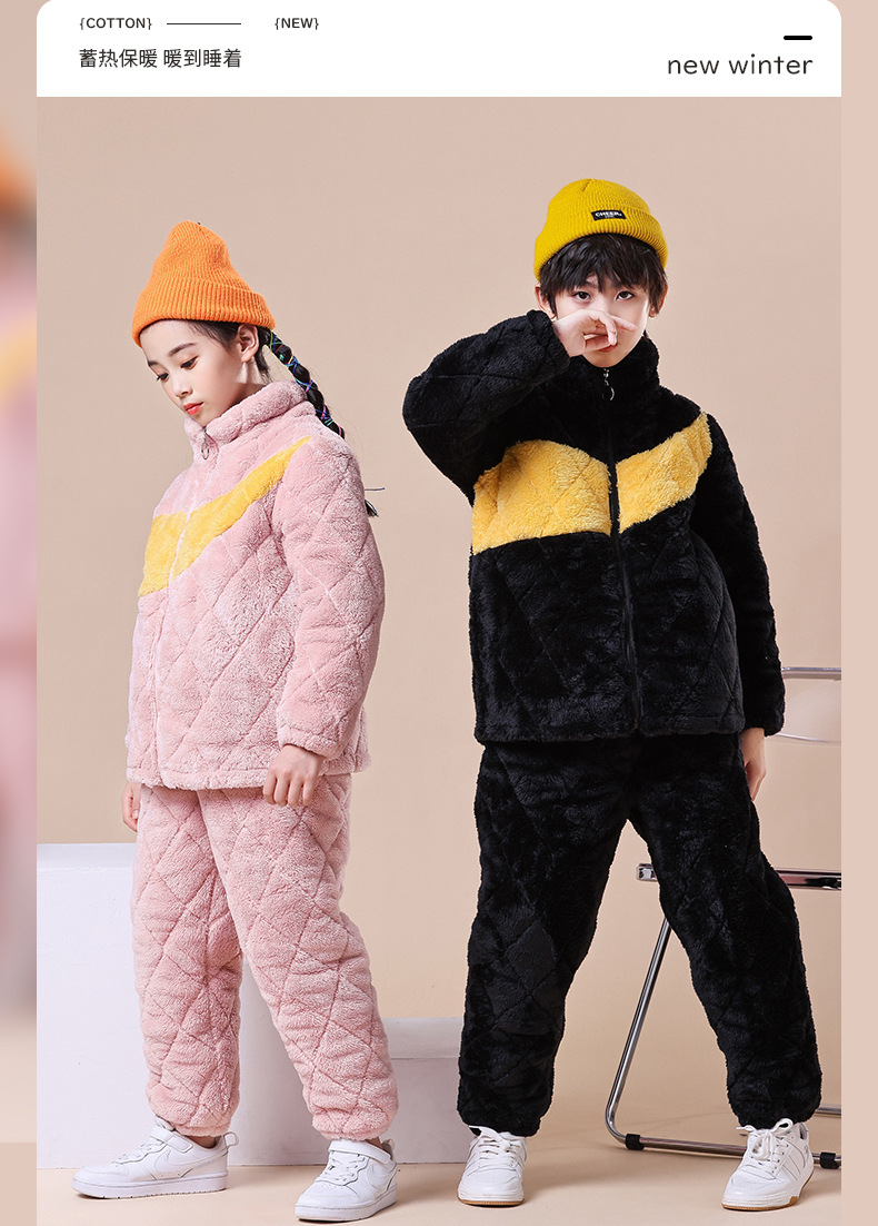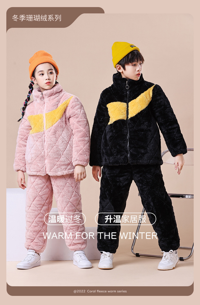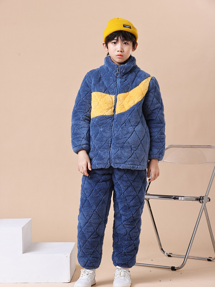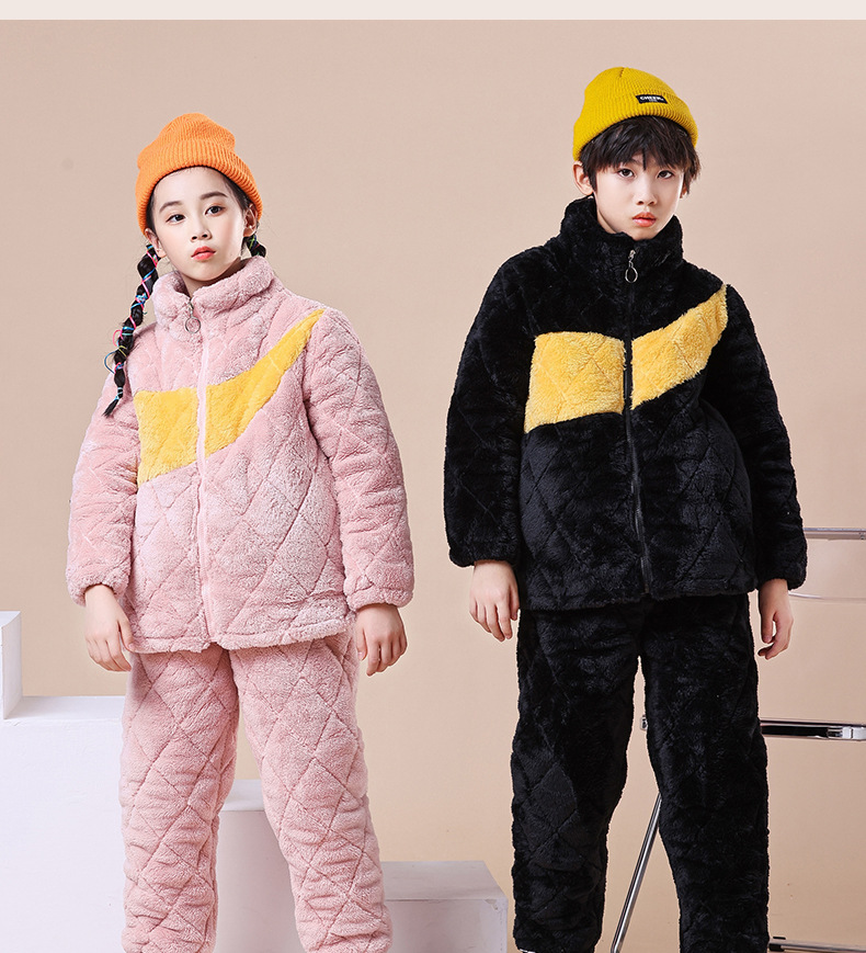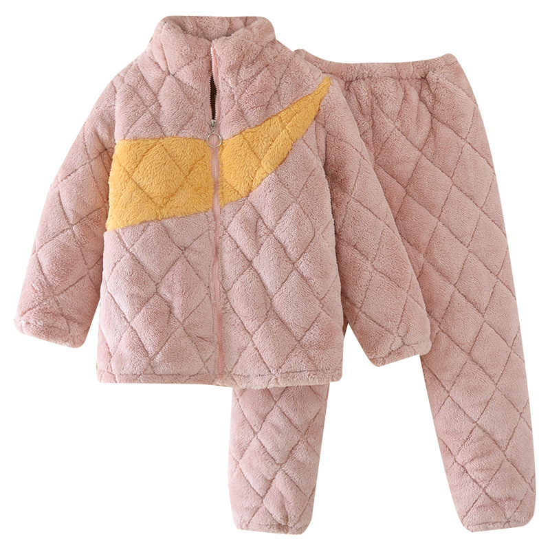 소년 겨울 어린이 잠옷 산호 벨벳 두꺼운 플란넬 3 층 퀼트 캐주얼 소녀 중대형 어린이 가정 의류