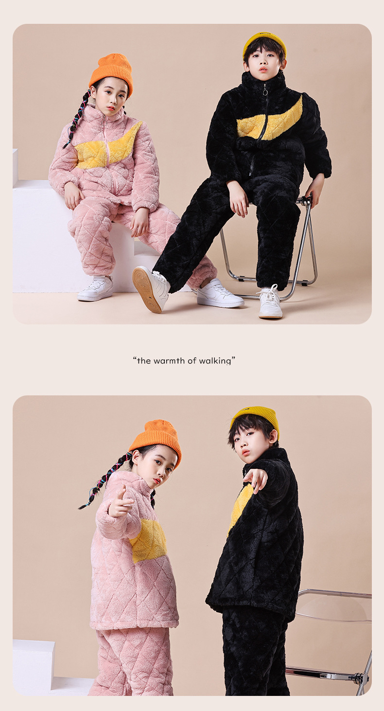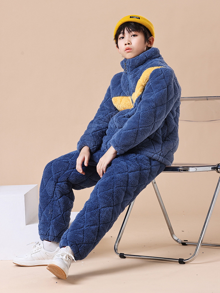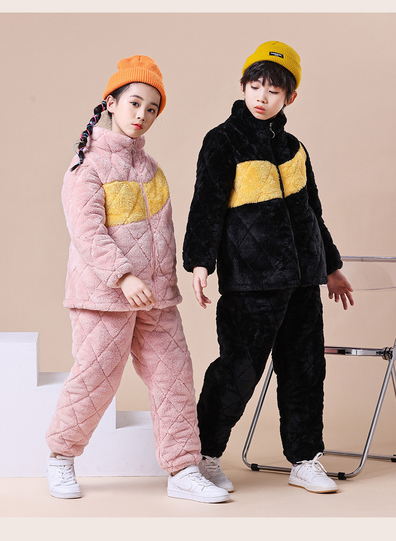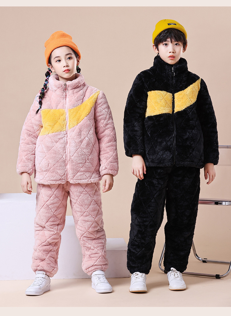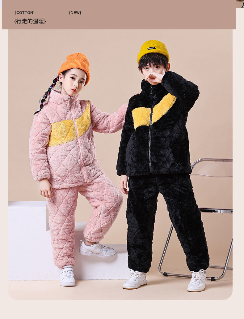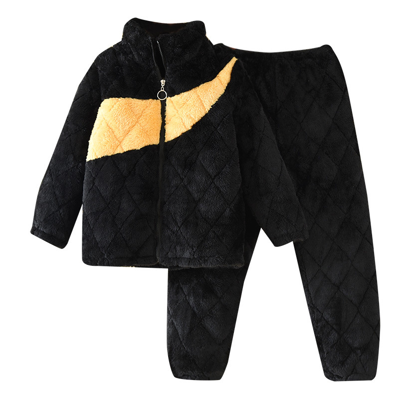 소년 겨울 어린이 잠옷 산호 벨벳 두꺼운 플란넬 3 층 퀼트 캐주얼 소녀 중대형 어린이 가정 의류