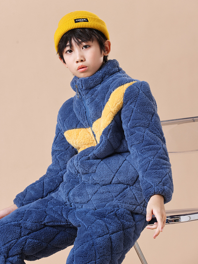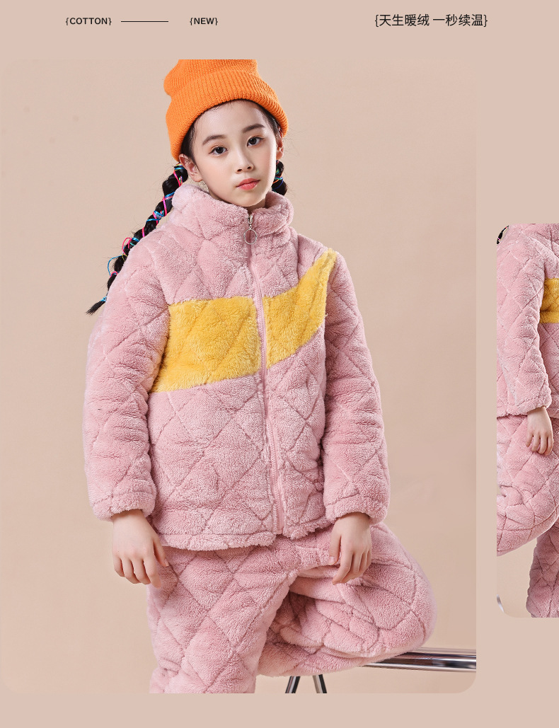 소년 겨울 어린이 잠옷 산호 벨벳 두꺼운 플란넬 3 층 퀼트 캐주얼 소녀 중대형 어린이 가정 의류스토어 가기