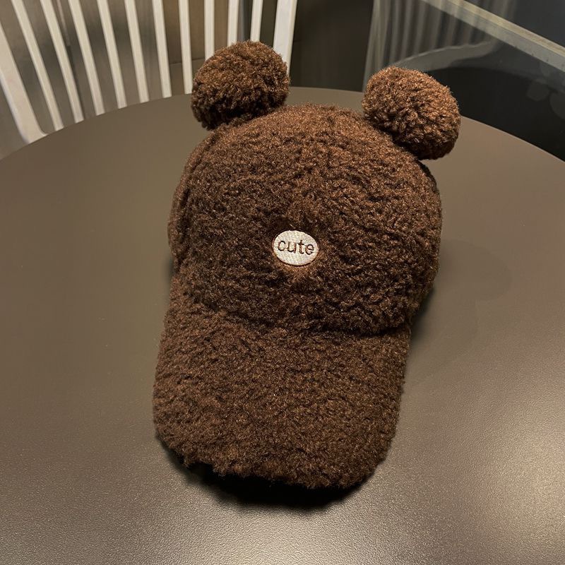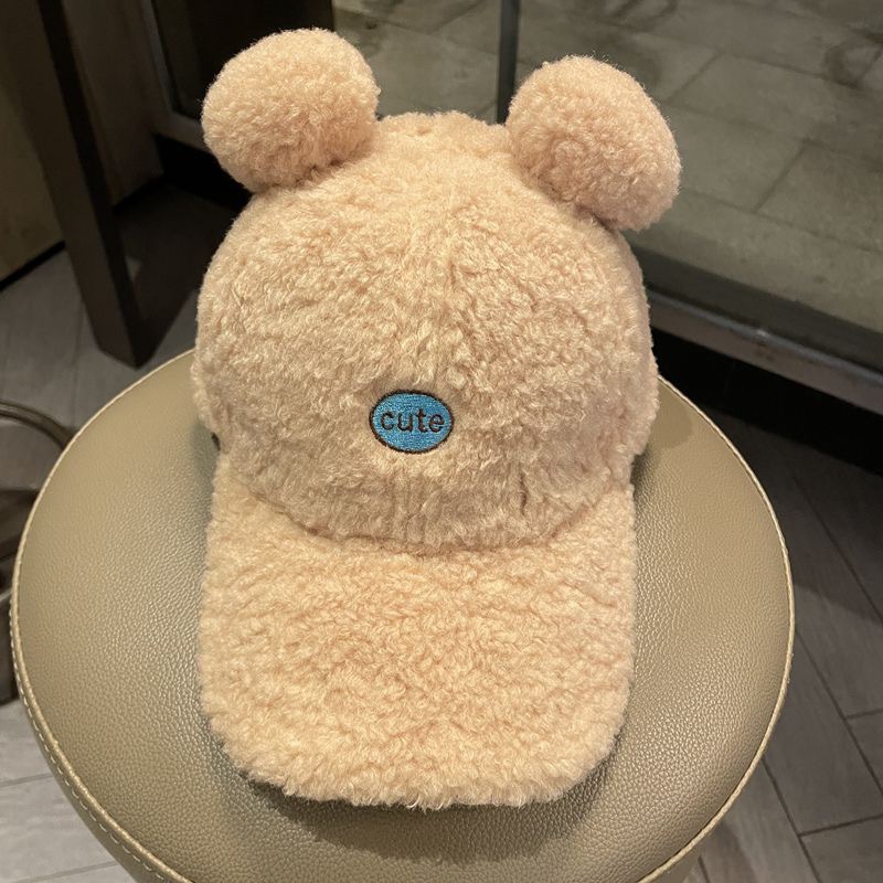 어린이 모자 가을과 겨울 소년 모자 트렌디 소녀 아기 귀여운 더블 볼 양고기 벨벳 따뜻한 야구 모자