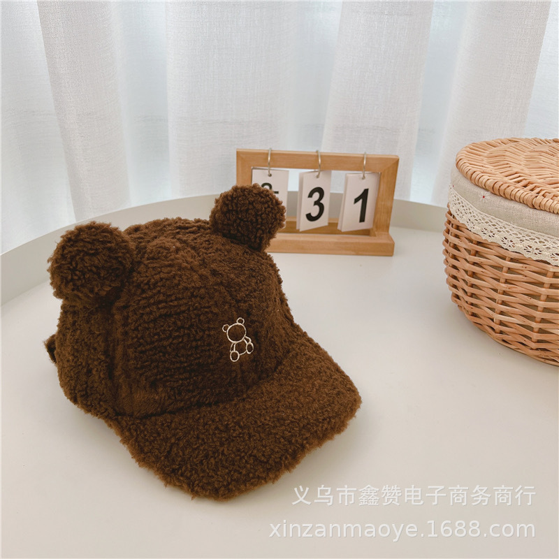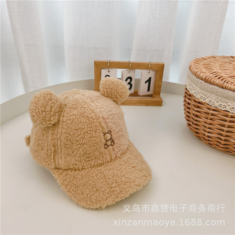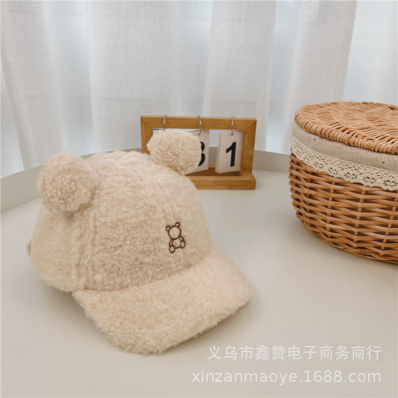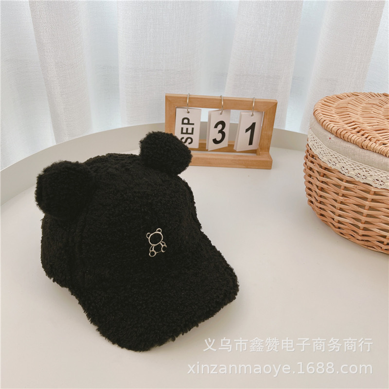 어린이 모자 가을과 겨울 소년 모자 트렌디 소녀 아기 귀여운 더블 볼 양고기 벨벳 따뜻한 야구 모자스토어 가기