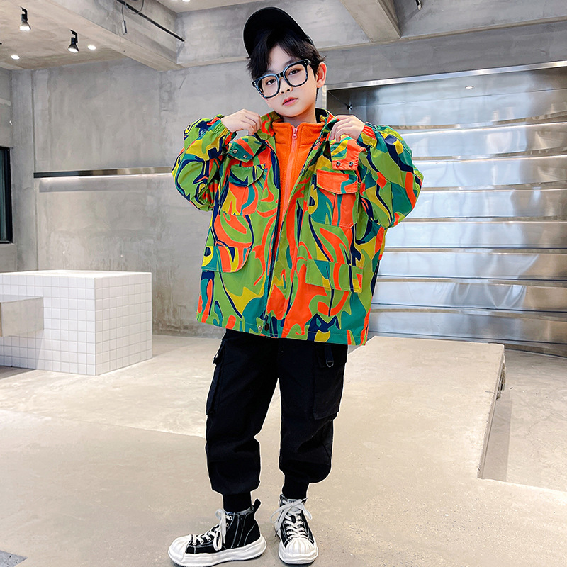 남아 쓰리 인 원 위장 트렌디 2022 가을 겨울 새로운 스타일 중 대형 남아 쓰리 인 원 재킷