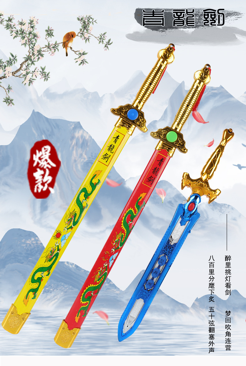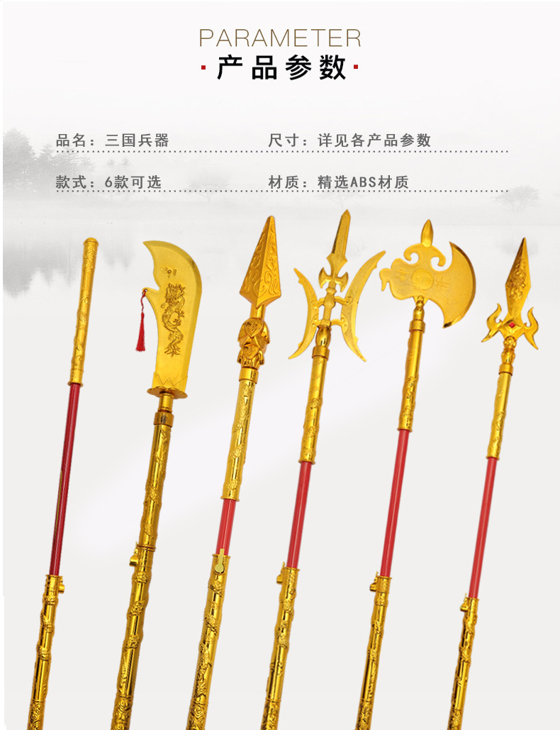어린이 장난감 삼국지 무기 불 총 드래곤 초승달 칼 자오 윤 총 송곳니 페인트 Halberd 도끼 빨간 술 총 큰 칼
