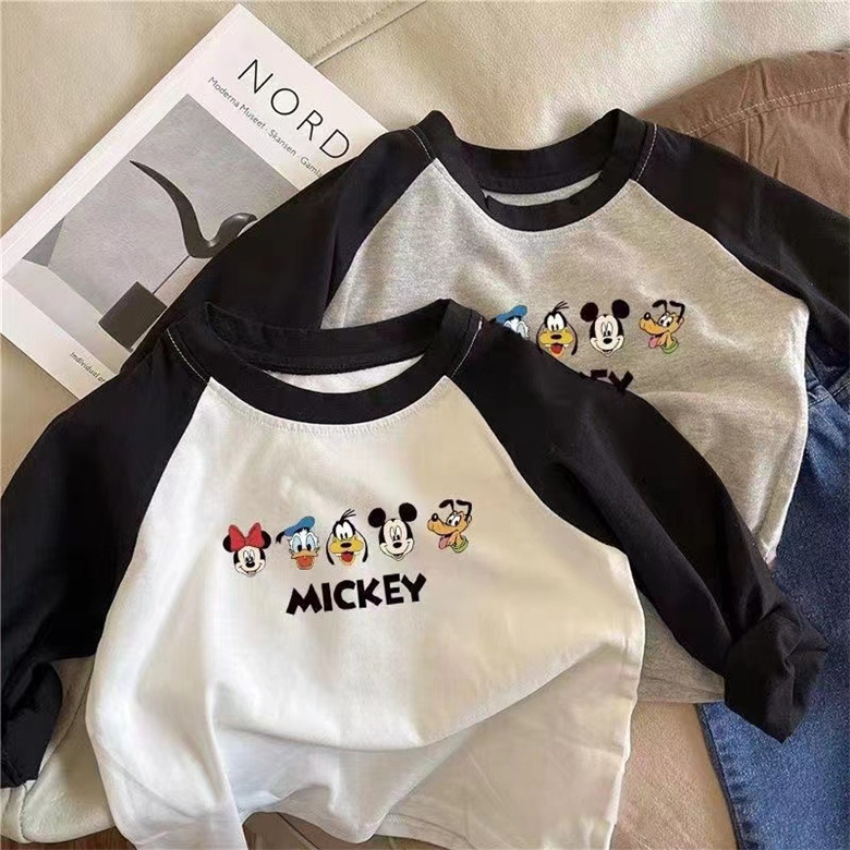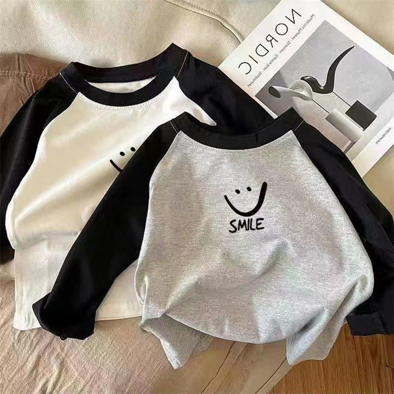 어린이 면 긴팔 봄과 가을 유행 아기 소년과 소녀 크루넥 편안한 탑을위한 귀여운 프린트 티셔츠스토어 가기